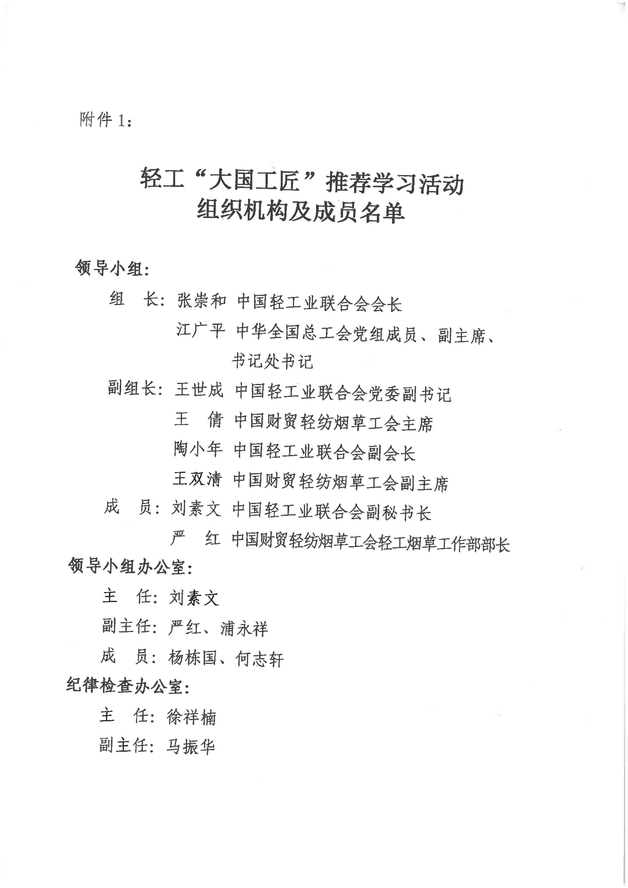 附件:《关于在轻工行业开展“大国工匠”推荐学习活动的通知》中轻联办〔2017〕287号