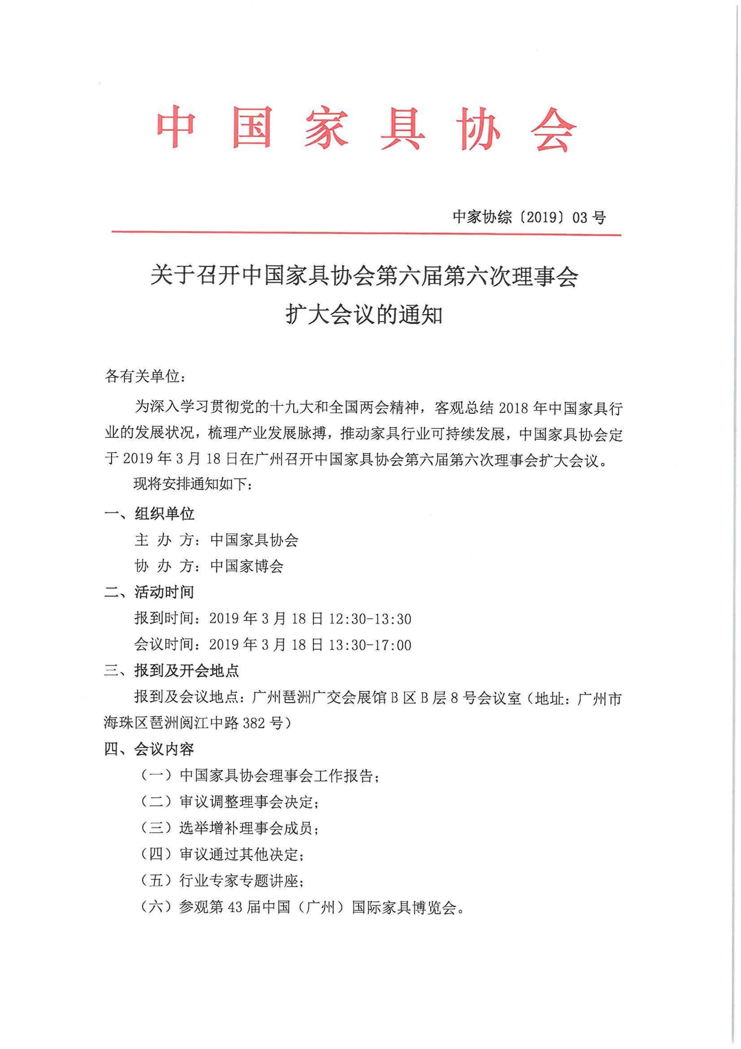 关于召开优米app有哪些第六届第六次理事会扩大会议的通知--中家协综〔2019〕03号