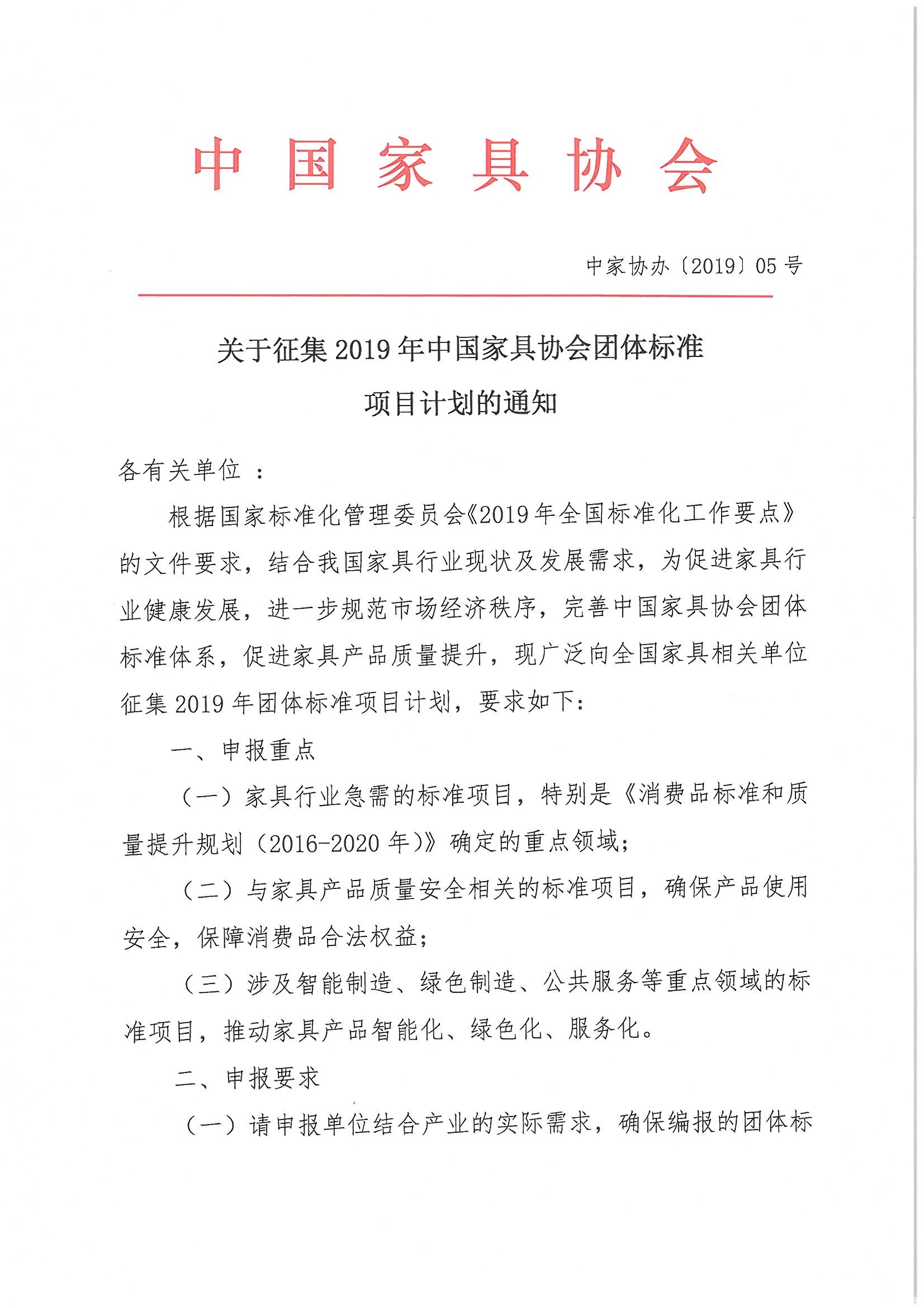 《关于征集2019年优米app有哪些团体标准项目计划的通知》--中家协办﹝2019﹞05号