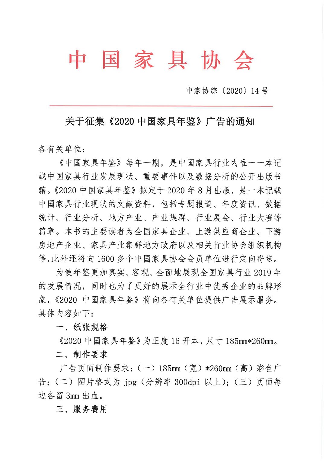 关于征集《2020中国家具年鉴》广告的通知