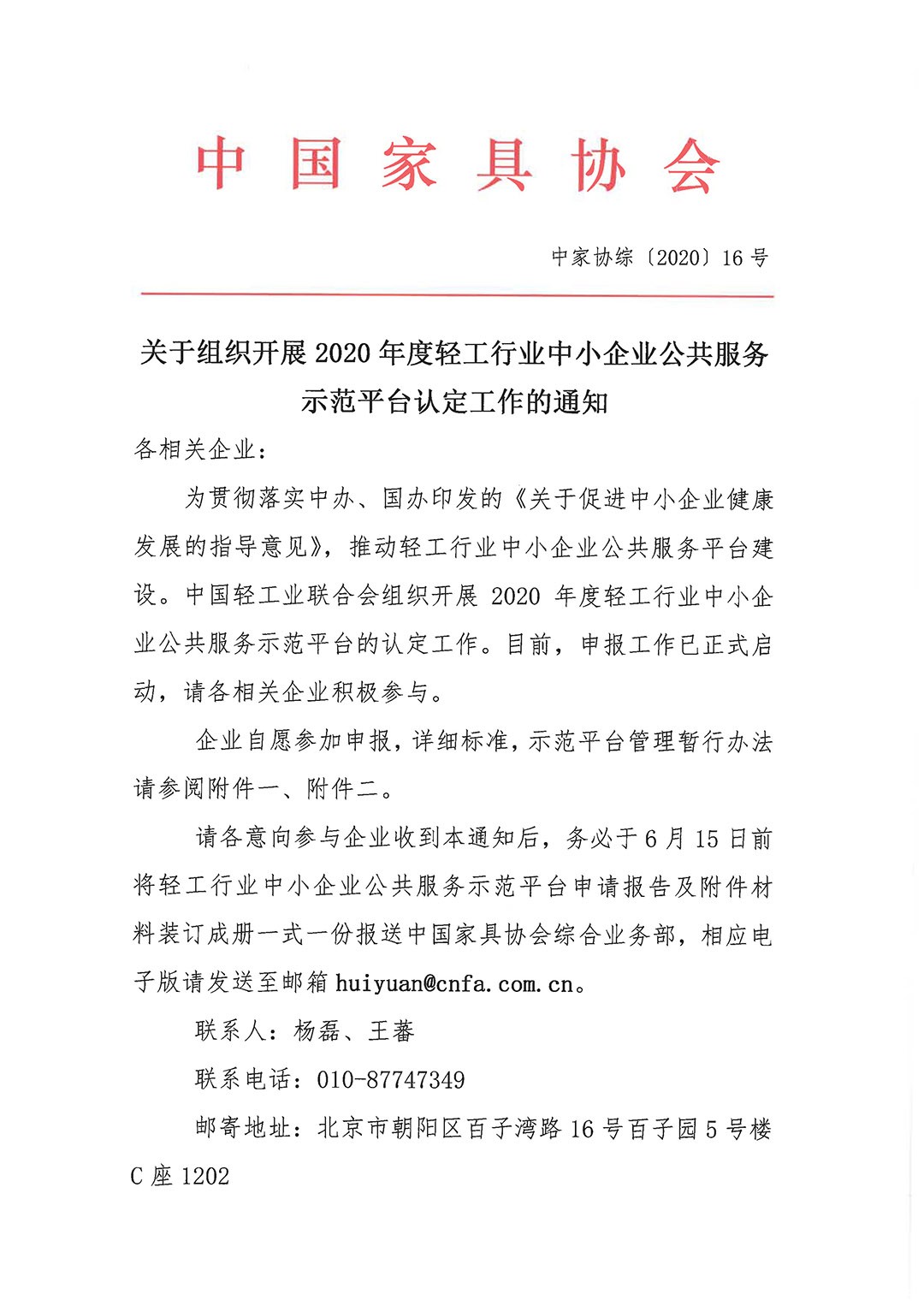 关于组织开展2020年度轻工行业中小企业公共服务示范平台认定工作的通知
