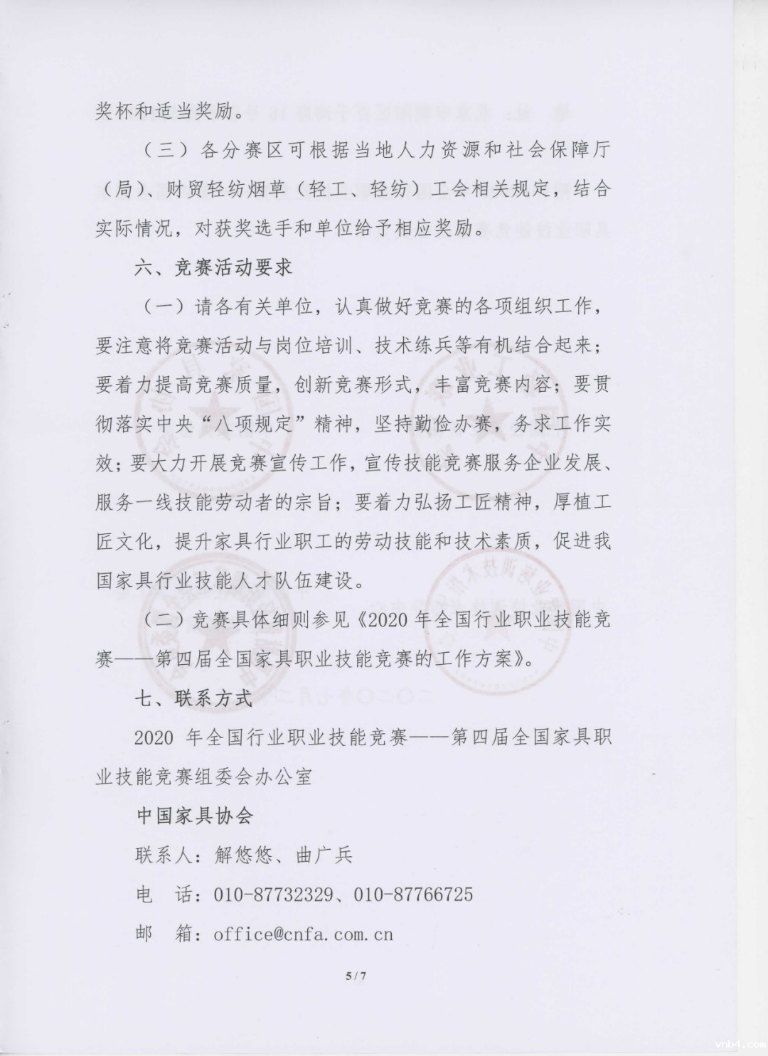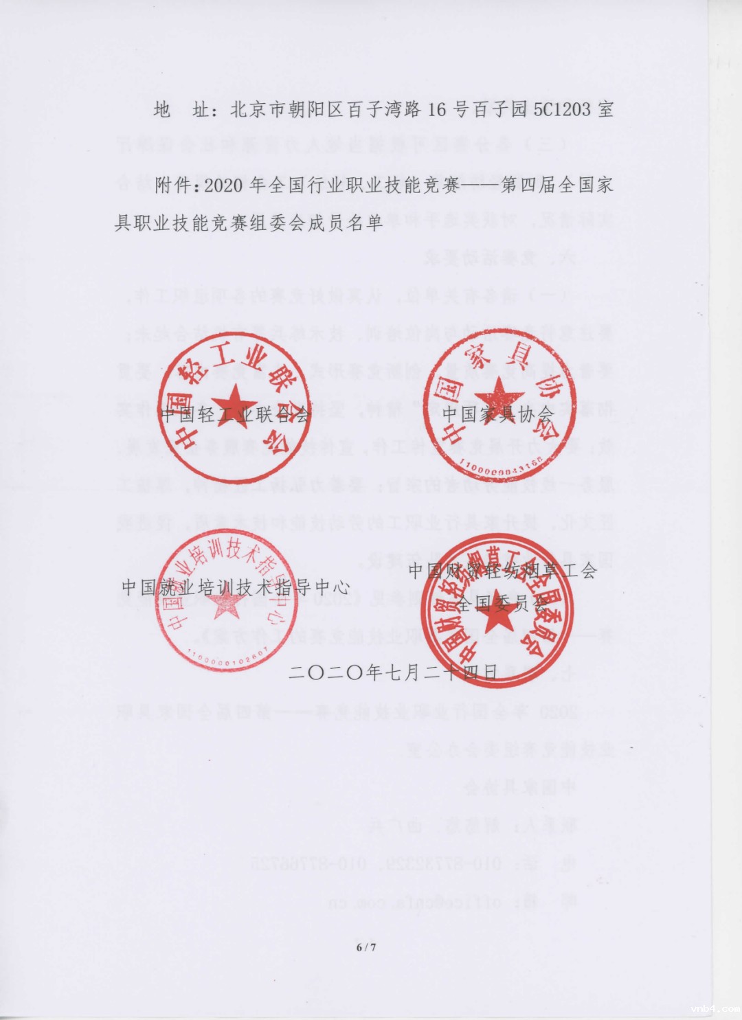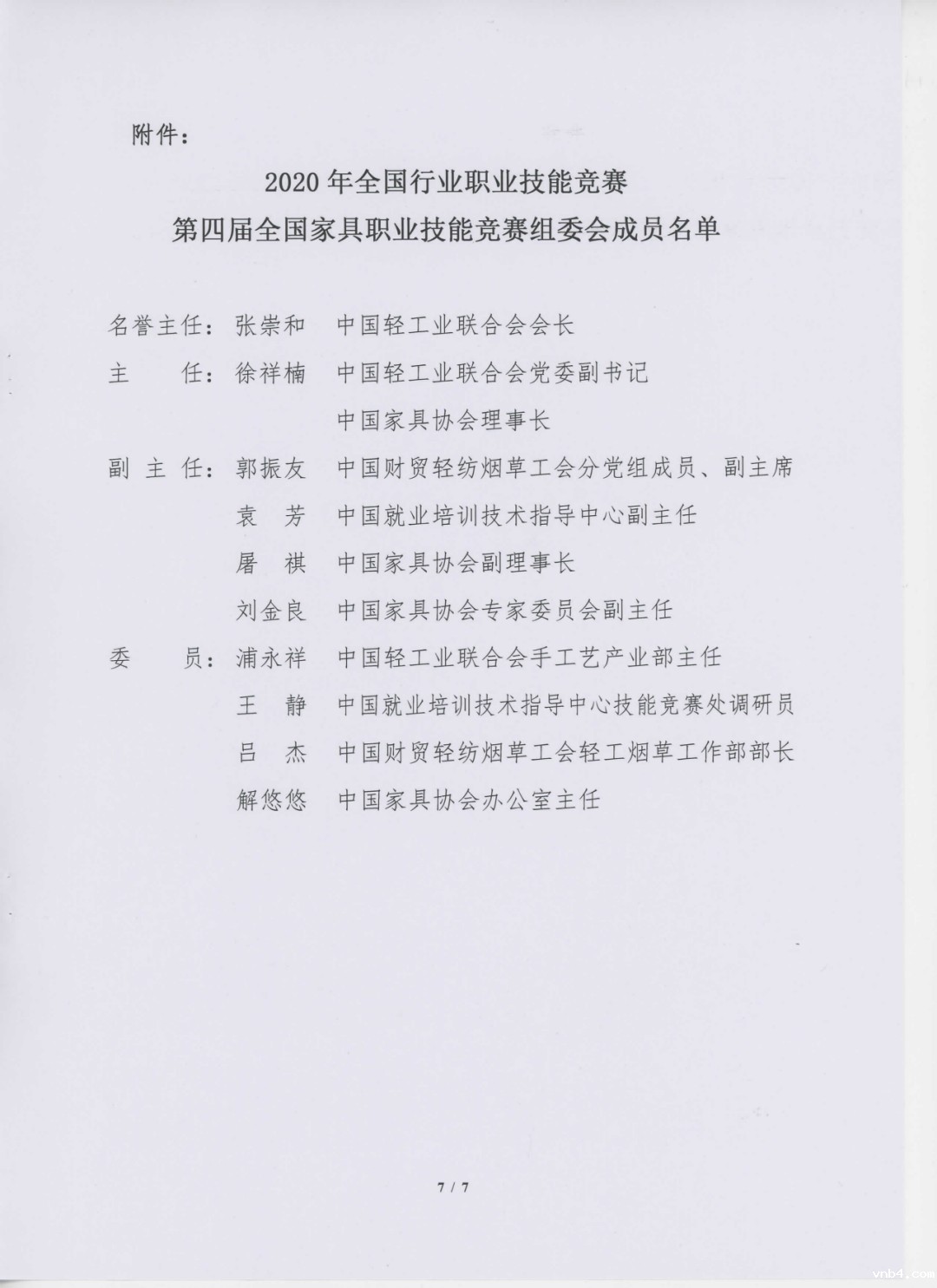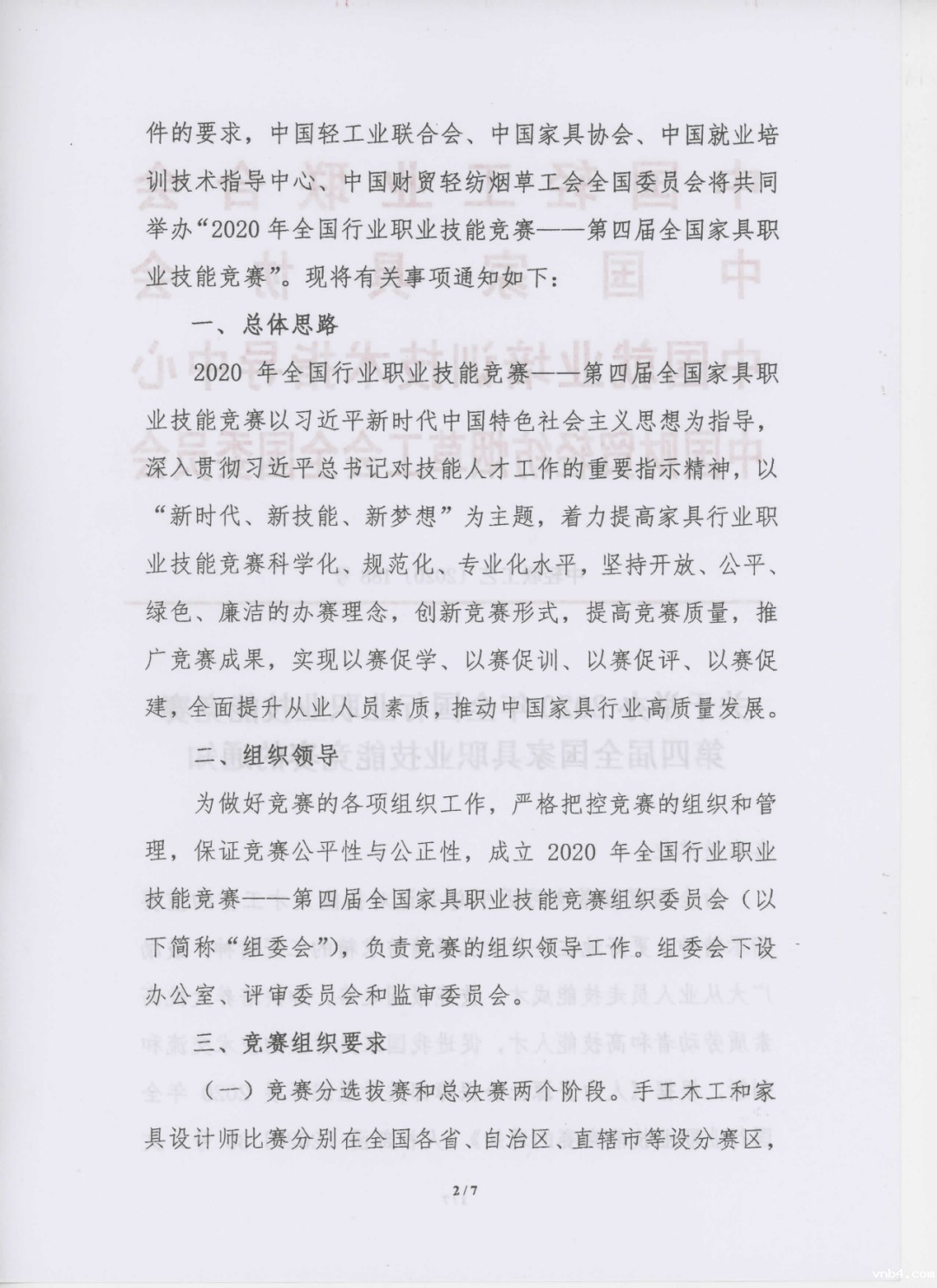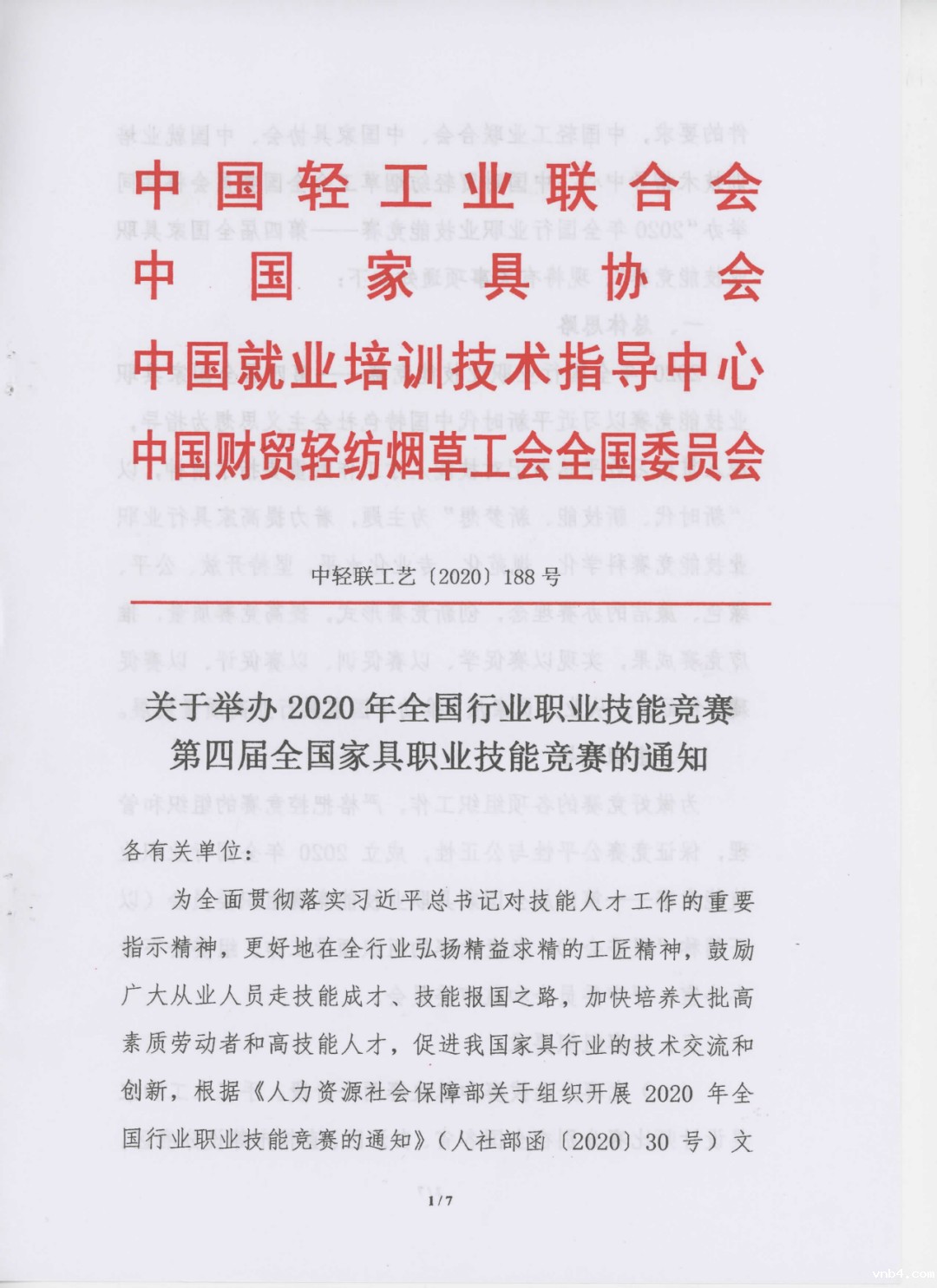 关于举办2020年全国行业职业技能竞赛——第四届全国家具职业技能竞赛的通知