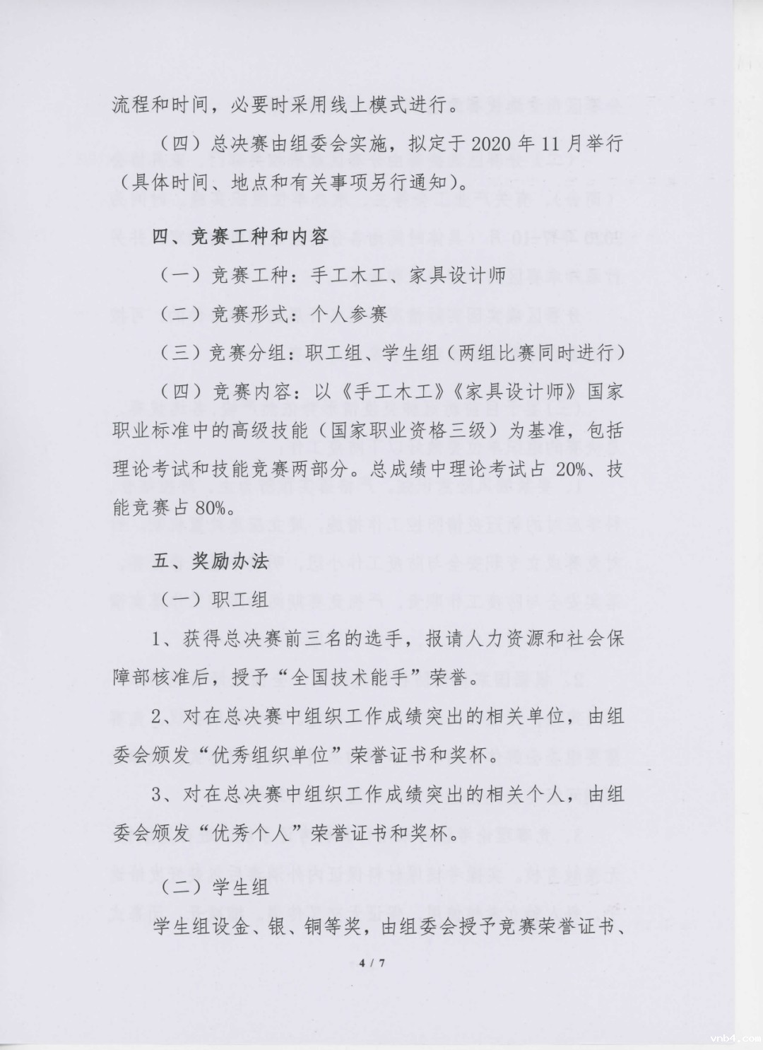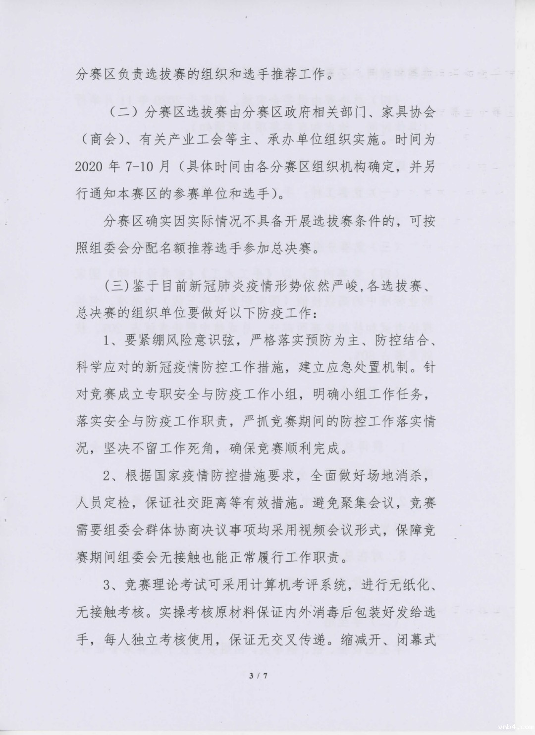 2020年全国行业职业技能竞赛 第四届全国家具职业技能竞赛的工作方案