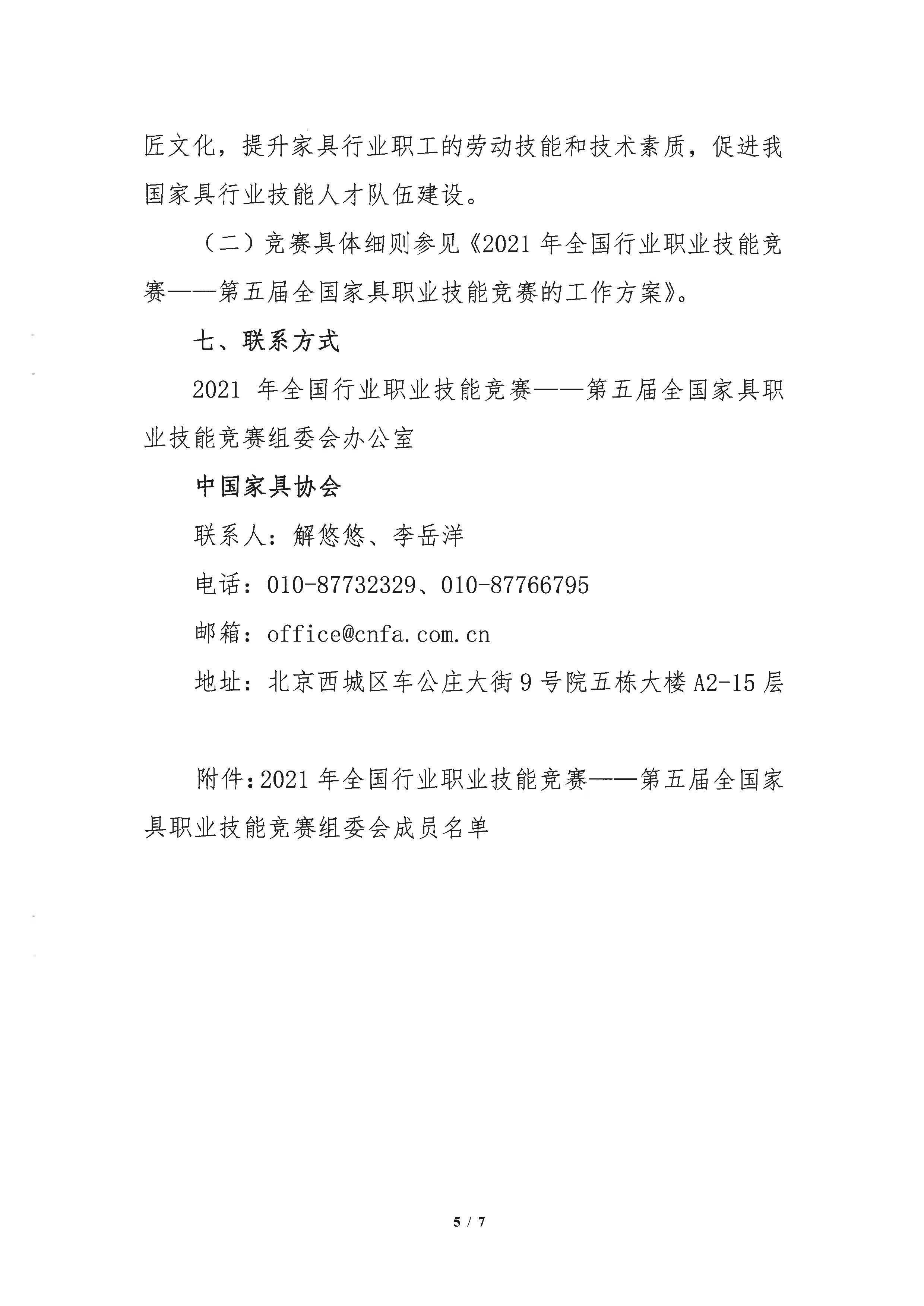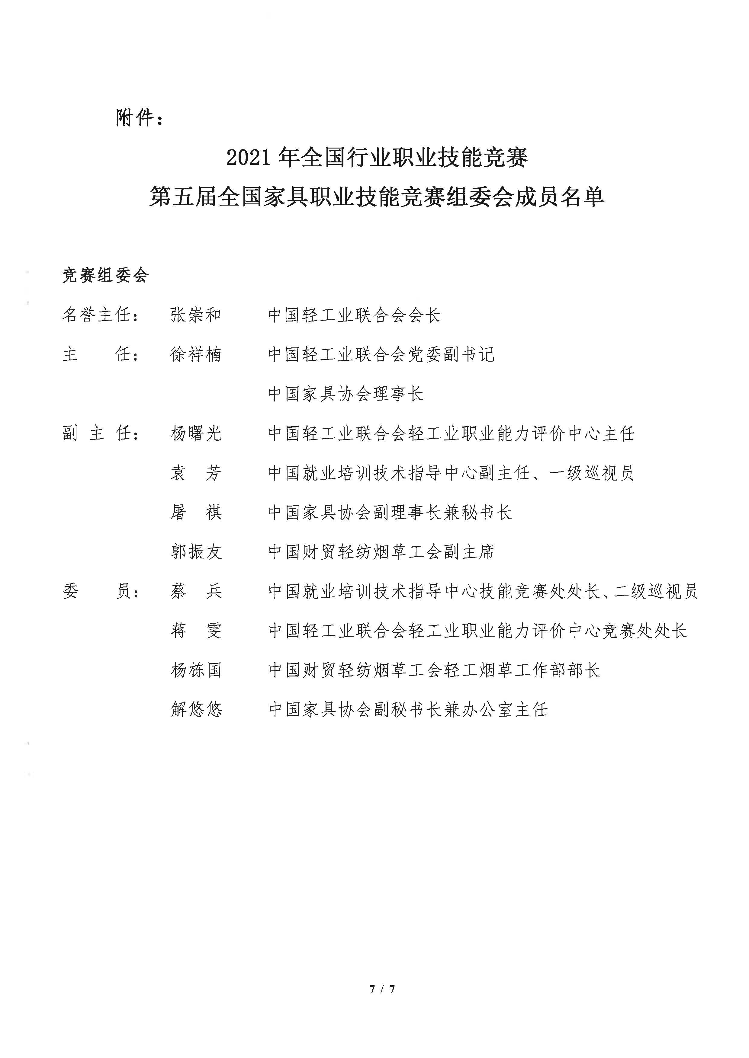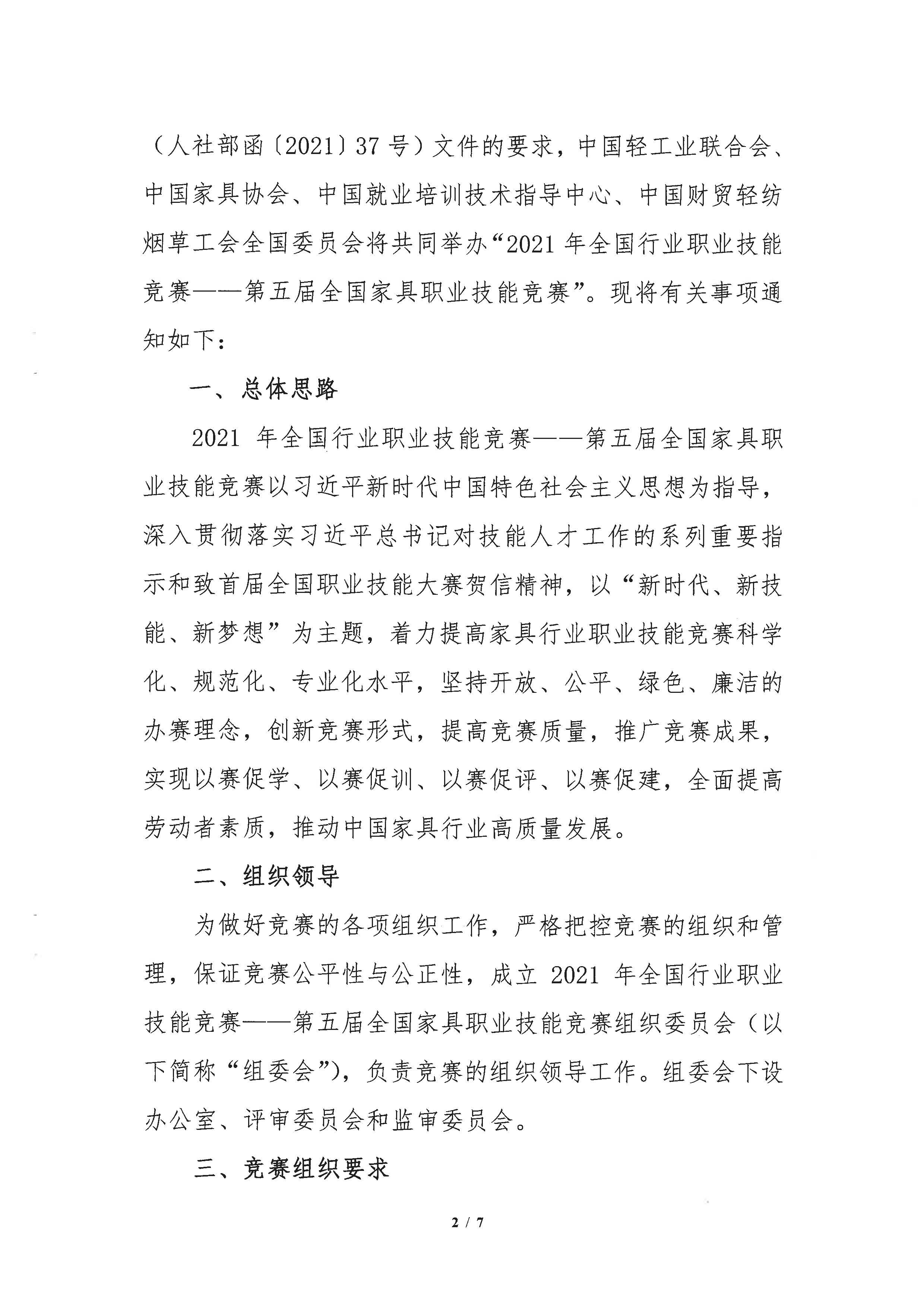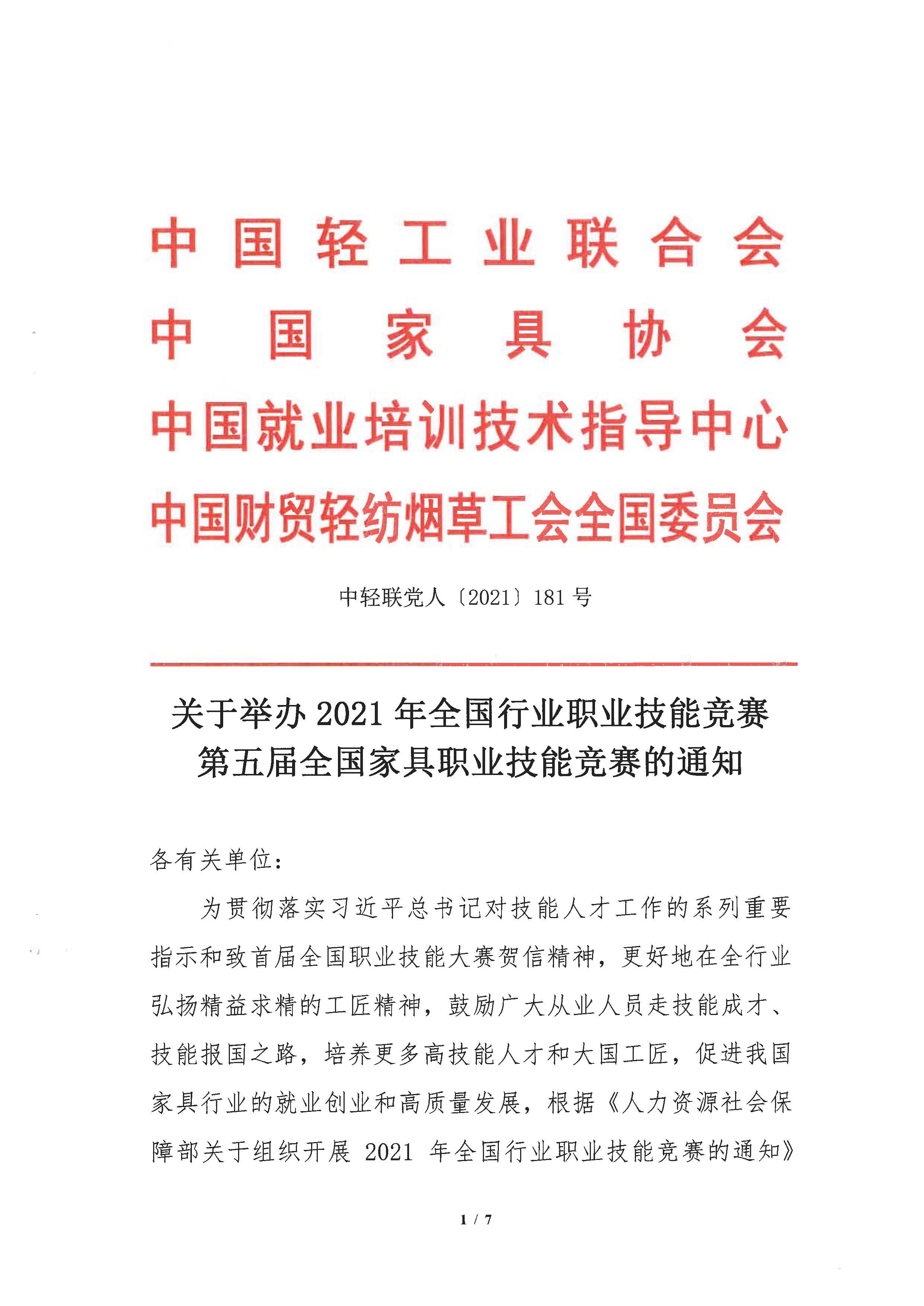 关于举办2021年全国行业职业技能竞赛——第五届全国家具职业技能竞赛的通知