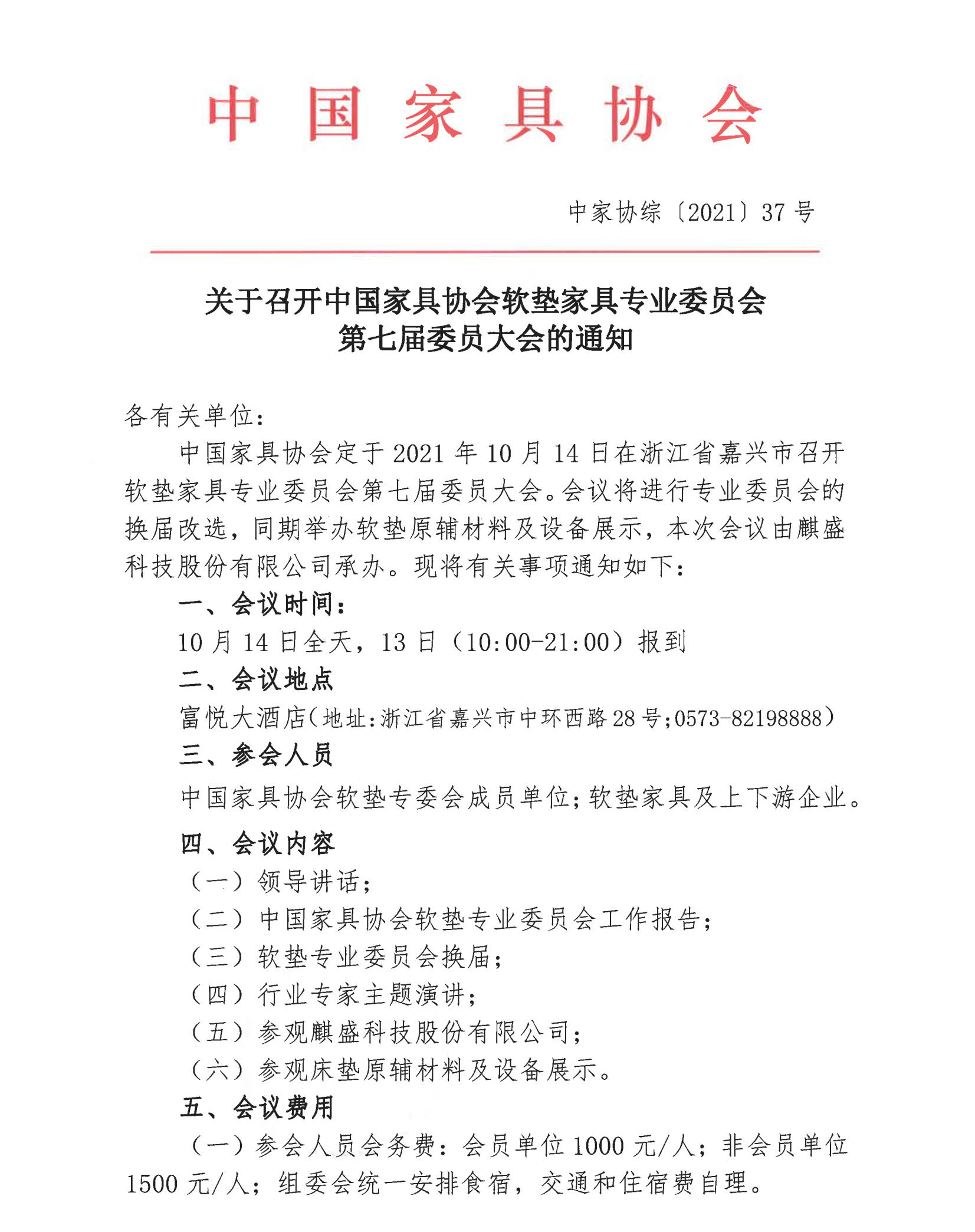 关于召开优米app有哪些软垫家具专业委员会第七届委员大会的通知