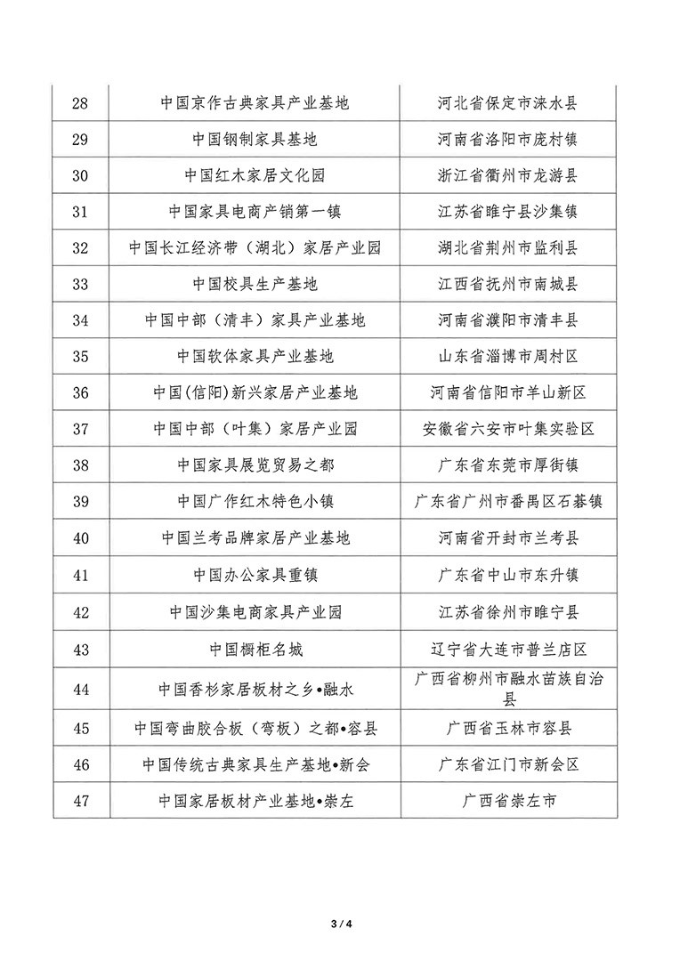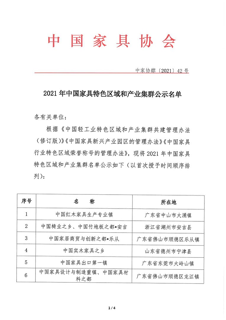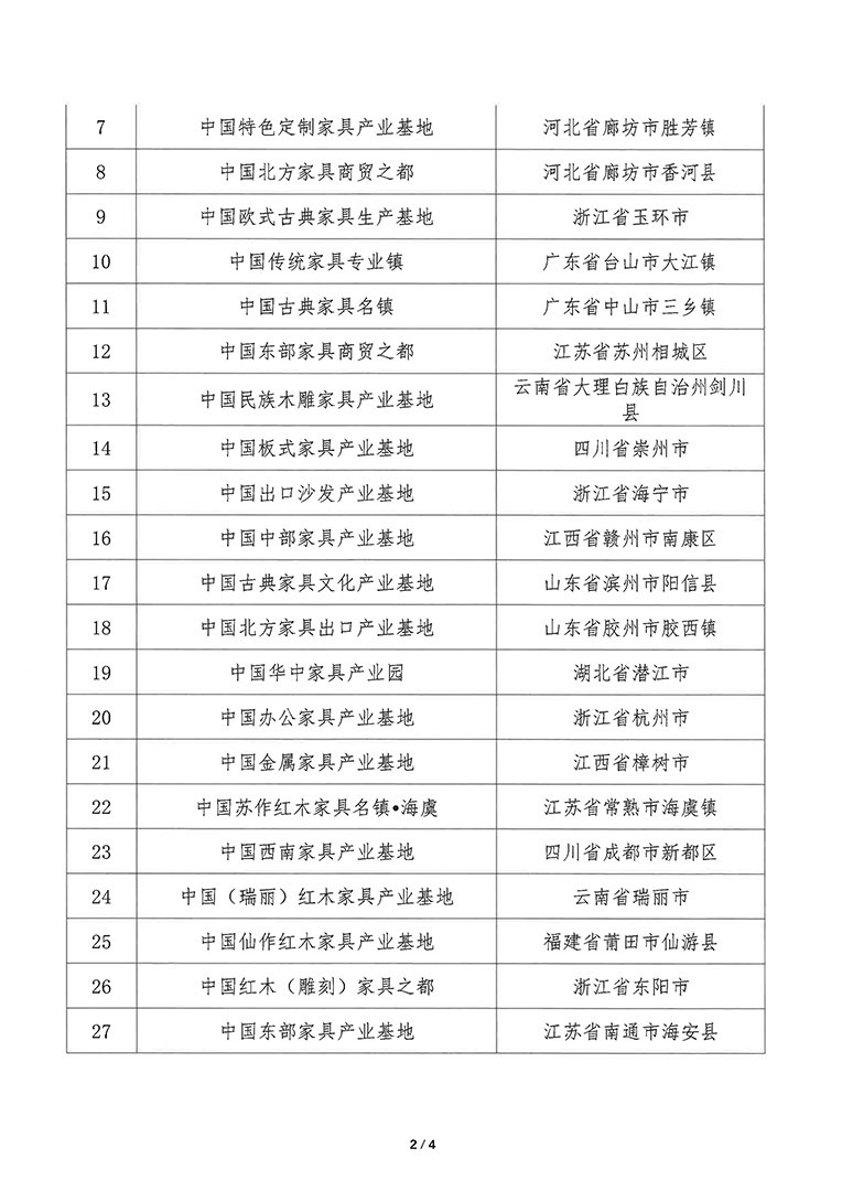 2021年中国家具特色区域和产业集群公示名单