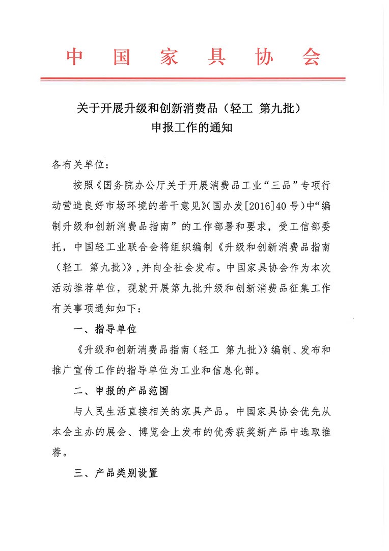 关于开展升级和创新消费品(轻工 第九批)申报工作的通知