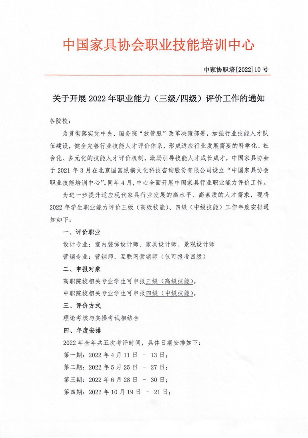 关于开展2022年职业能力(三级/四级)评价工作的通知