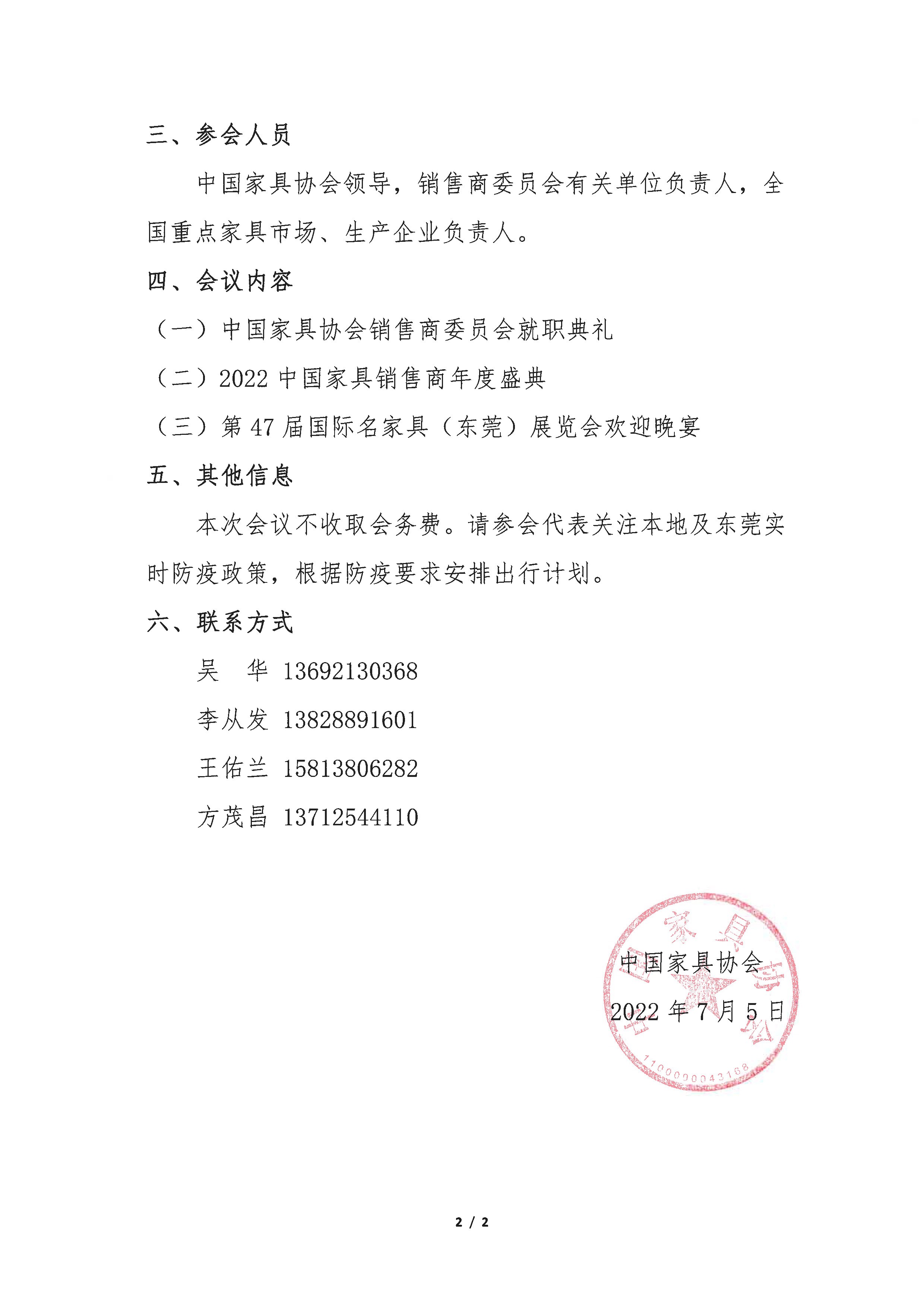 关于召开优米app有哪些销售商委员会就职典礼暨2022中国家具销售商年度盛典的通知