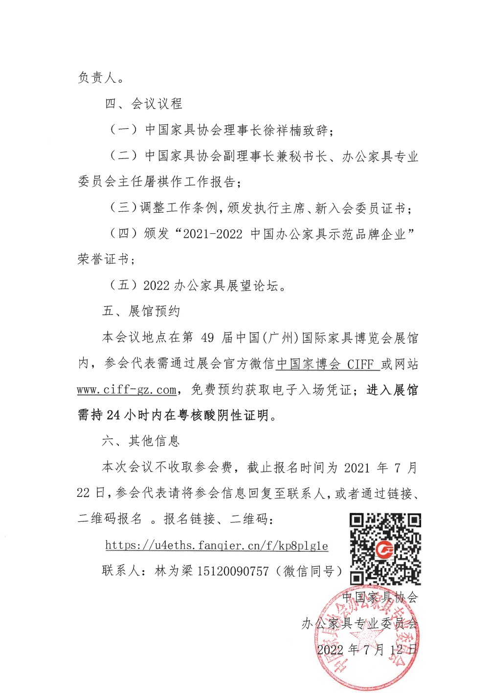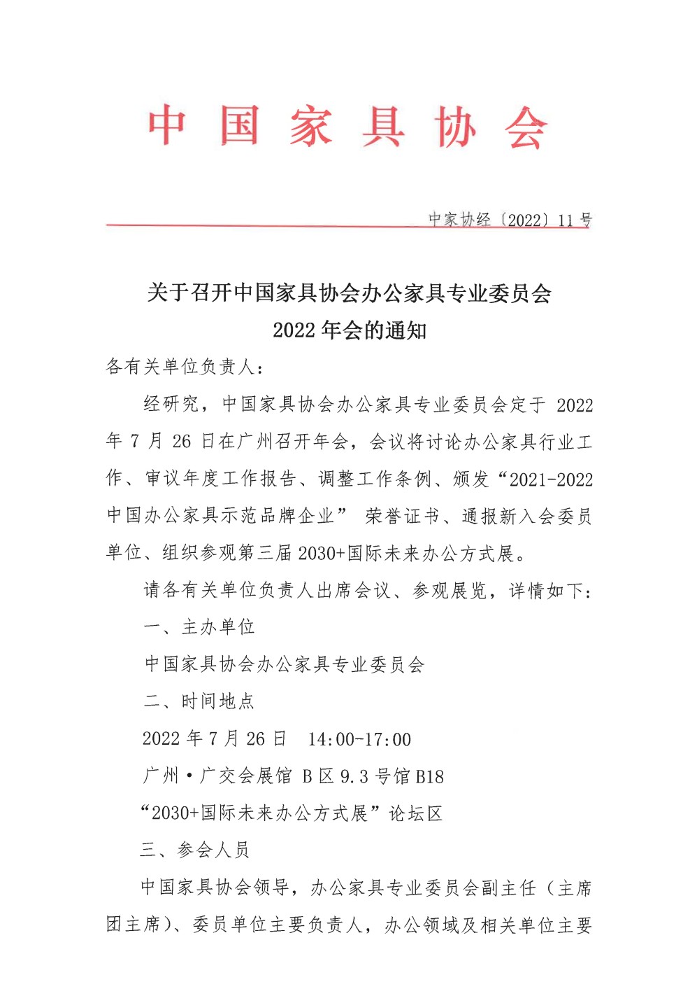 关于召开优米app有哪些办公家具专业委员会2022年会的通知