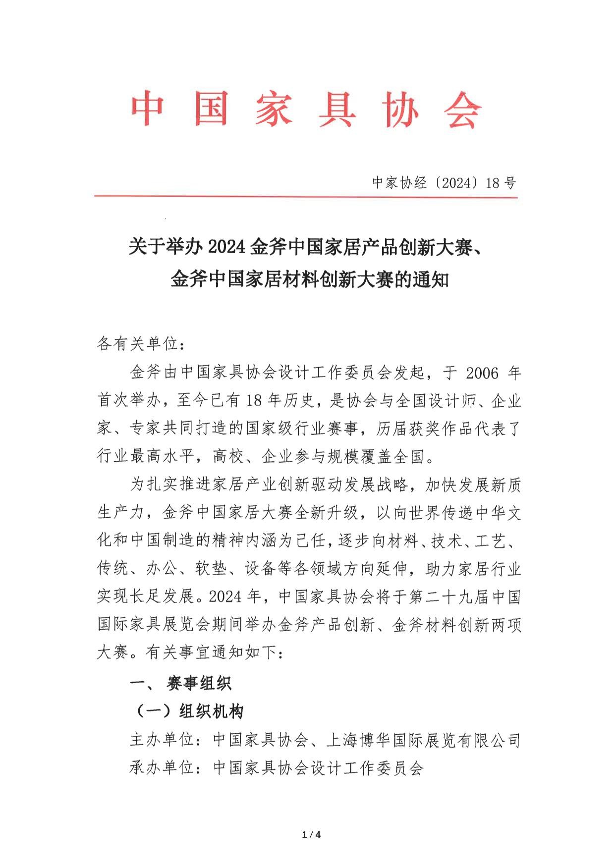 颁奖典礼:最终获奖名单将在“2024金斧中国家居产品创新大赛”颁奖典礼上公布,并为获奖单位进行颁奖。