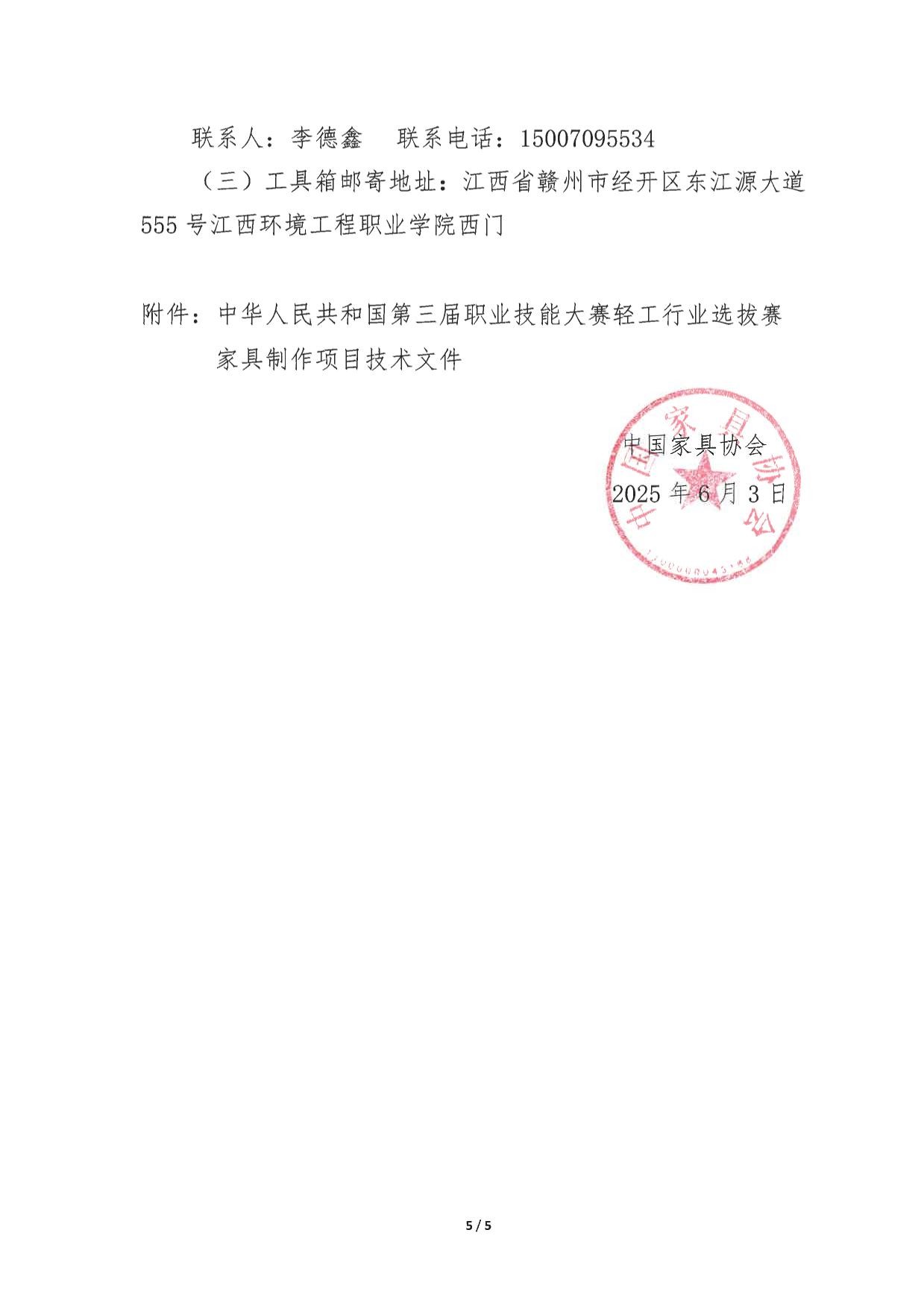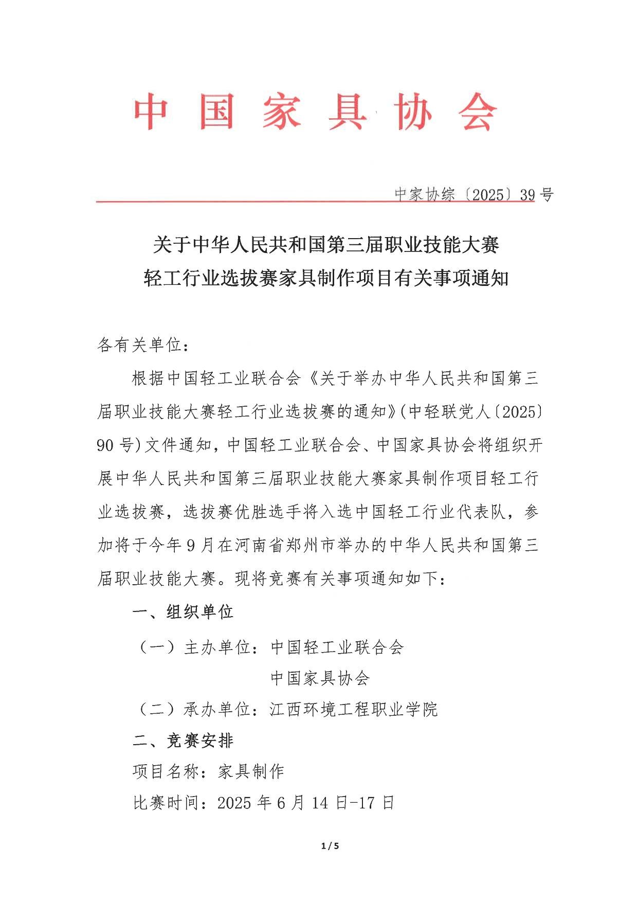 关于中华人民共和国第三届职业技能大赛 轻工行业选拔赛家具制作项目有关事项通知