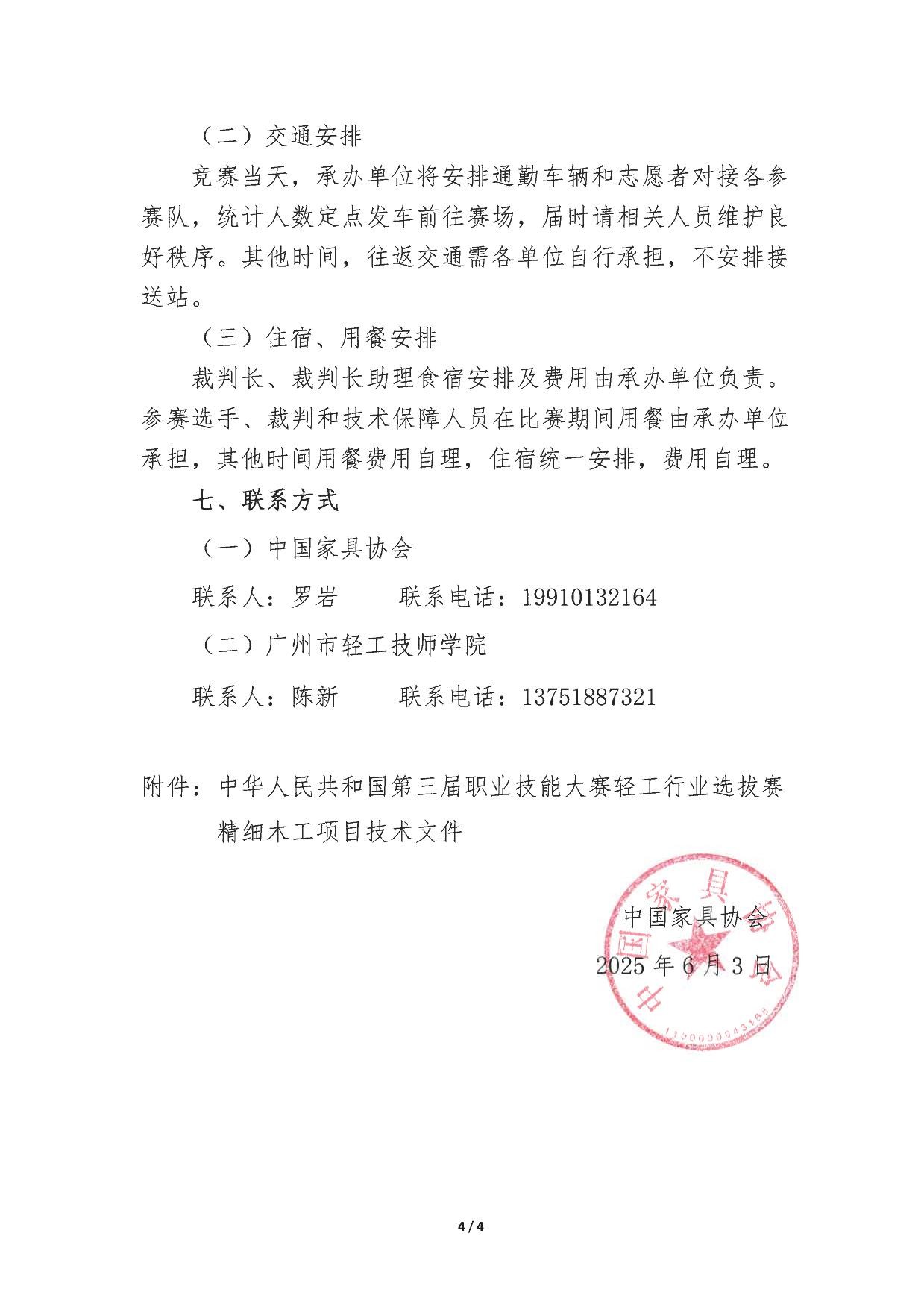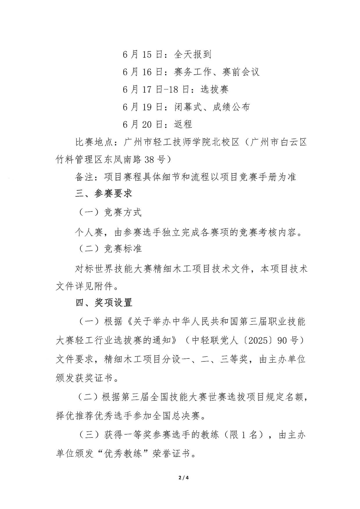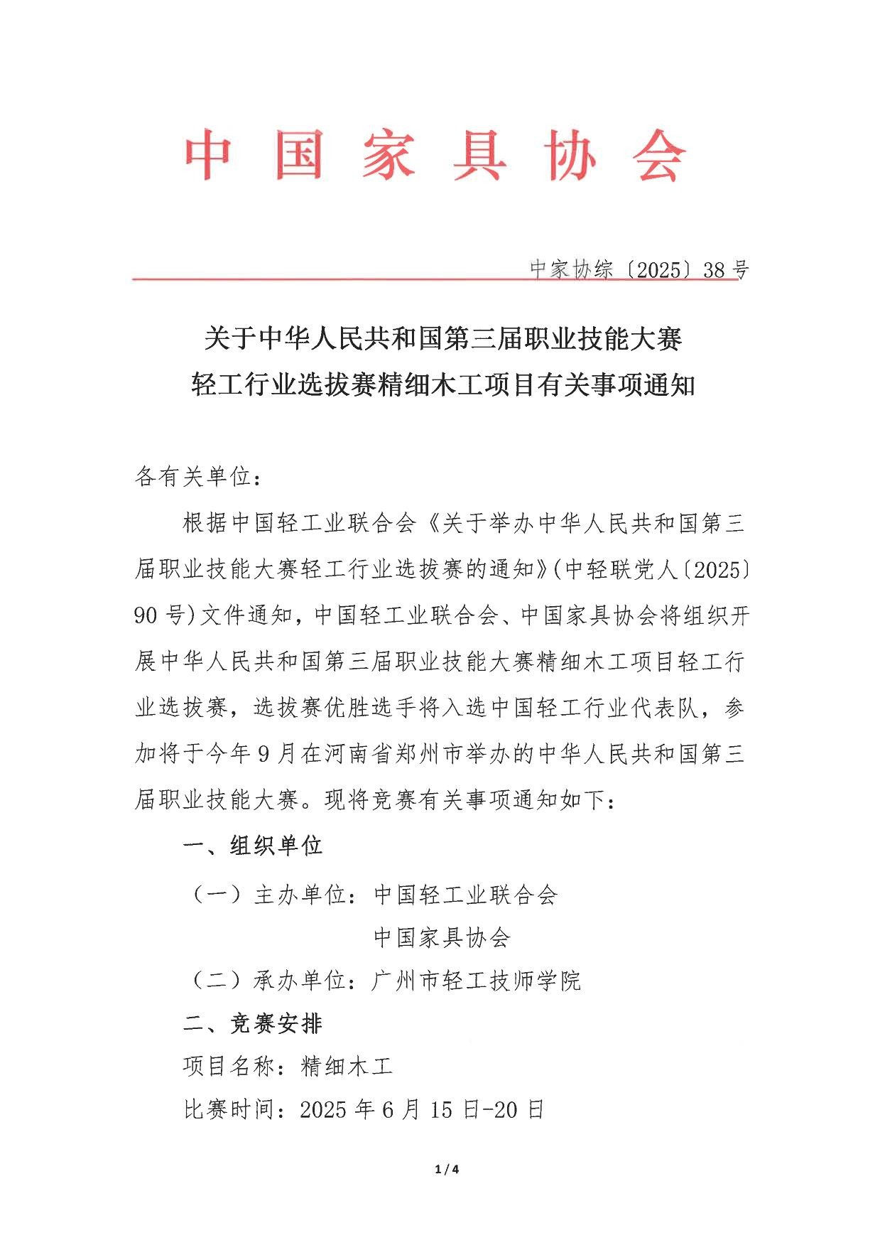 关于中华人民共和国第三届职业技能大赛 轻工行业选拔赛精细木工项目有关事项通知