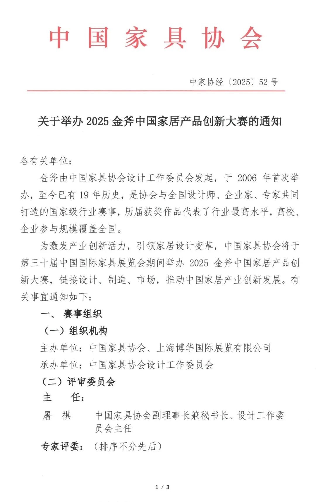 关于举办2025金斧中国家居产品创新大赛的通知