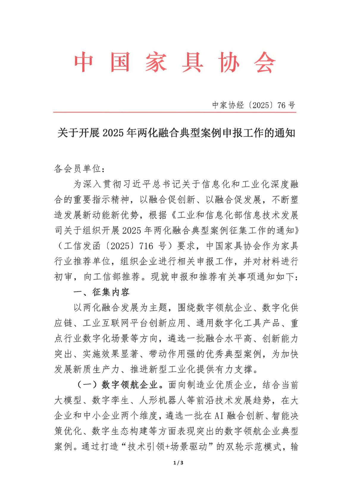 关于开展2025年两化融合典型案例申报工作的通知