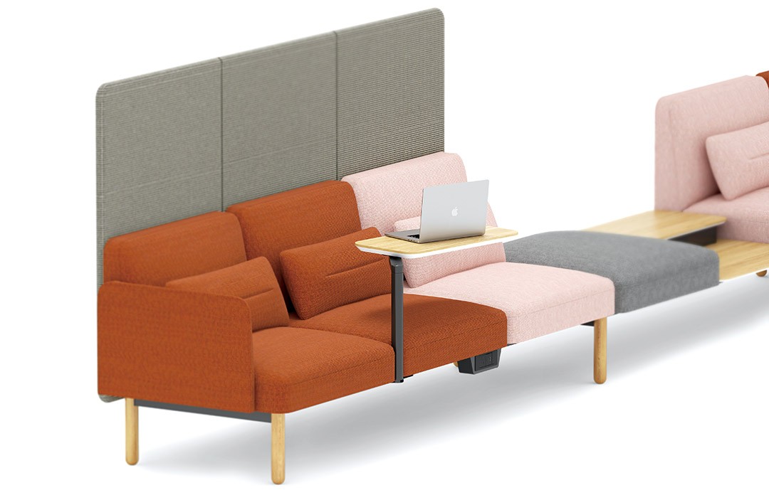 This sofa brings the new-generation office workers relaxing and pleasant mobile-type collaborative working experience. As a good match for different office spaces, it can meet the demands for open, semi-open, separate and collaborative office work purposes. Due to its modular design, users can arrange the sofa in L shape, U shape, straight line, curve or any other shapes they like. Supplied with screen, power supply, table board, tea table series and other items, the puffy sofa can be used for lobby, reception center, office, leisure and other public spaces.