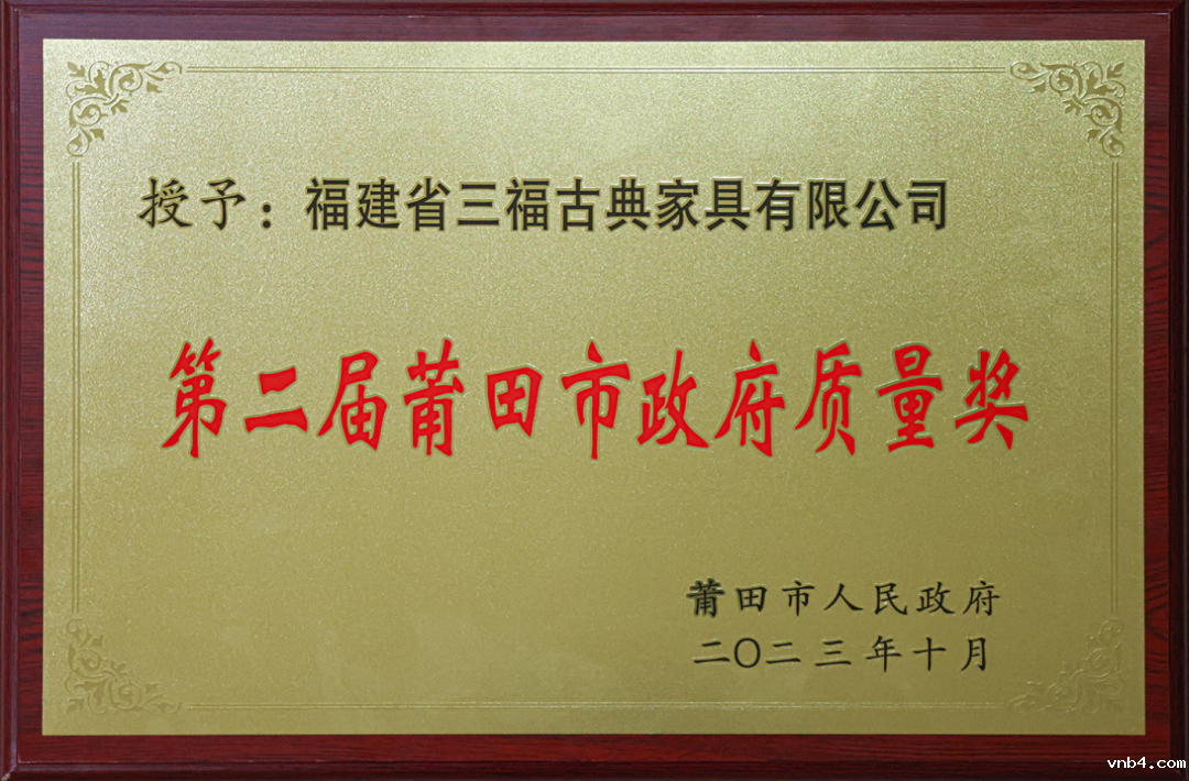 自创立以后,三福集团始终将产品品质放在首位,坚持“传承、创新、诚信、求精”的宗旨,制定了一套严格的生产流程,从选材到开料,从制作到打磨,从包装到运输,全程遵循古法,依据行业标准,保证每一件产品的质量,对家具制作的每个环节、每道工序、每个细节都更加注重精工细作,专注于将“一根木头变成一个艺术品”的产品理念,为品牌的发展打下了良好基础,实现经营合同0纠纷0诉讼,客户满意率100%,更在2023年荣膺莆田市“第二届政府质量奖”。