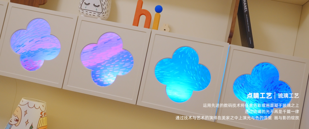 运用先进的数码技术将任意色彩或画面凝于玻璃之上,透过琉璃的光不再是千篇一律,通过技术与艺术的演绎,在美家之中上演光与色的涅槃,画与影的绽放。