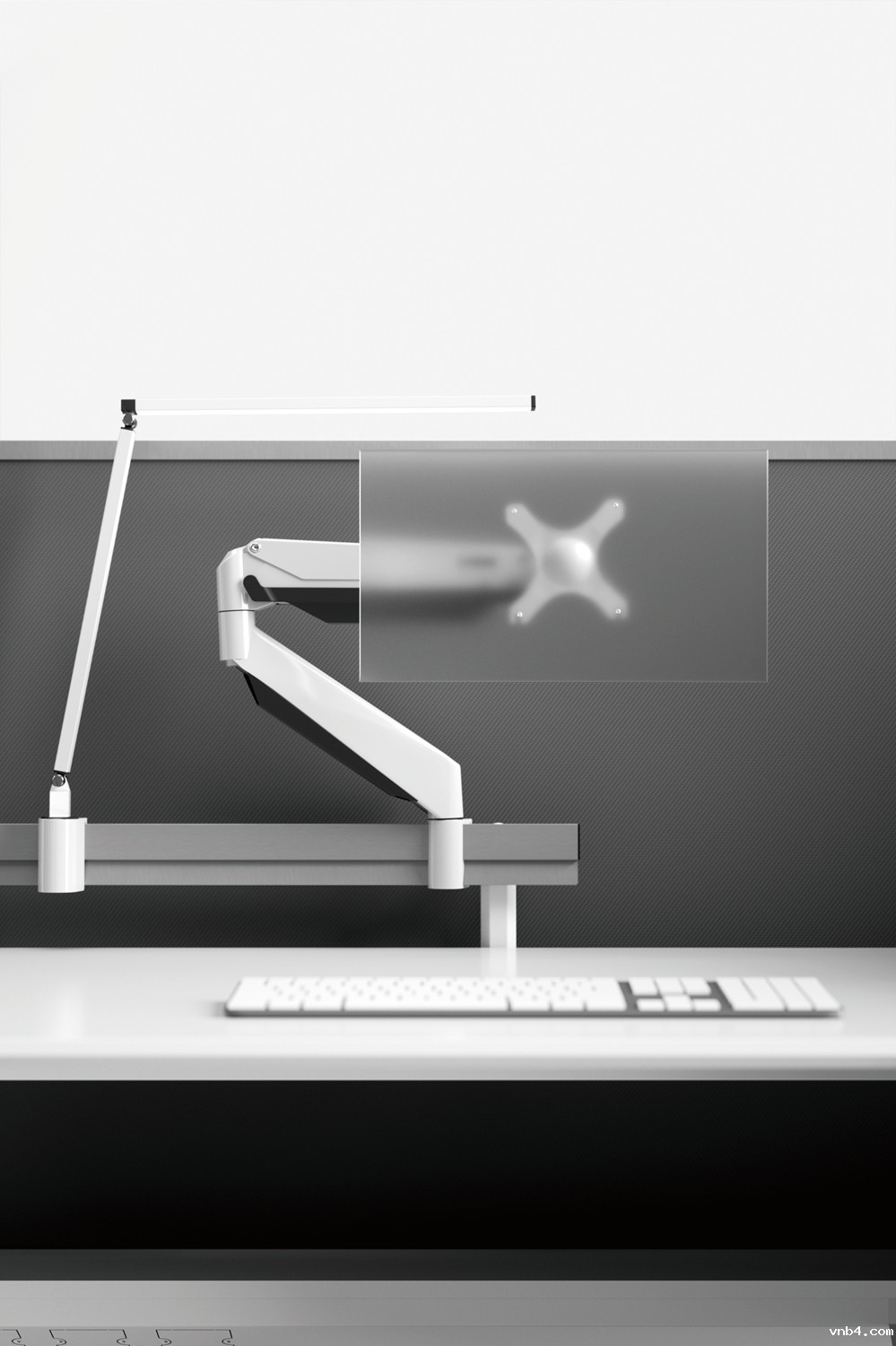 桌面可配置铝合金横梁,承载显示器支撑臂、Inbox收纳盒、台灯等周边产品,且依使用需要在横梁上灵活移动。
