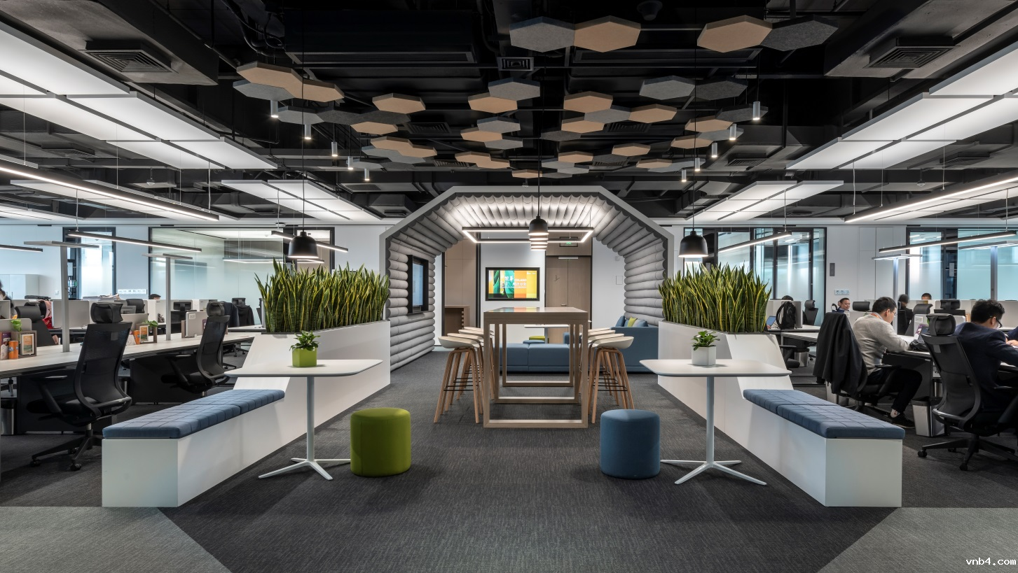 保证视线通畅,空间开敞,便于员工交流,允许个人和团队选择最适合自己工作风格的环境,创造让员工想要表达自我和分享想法的环境。