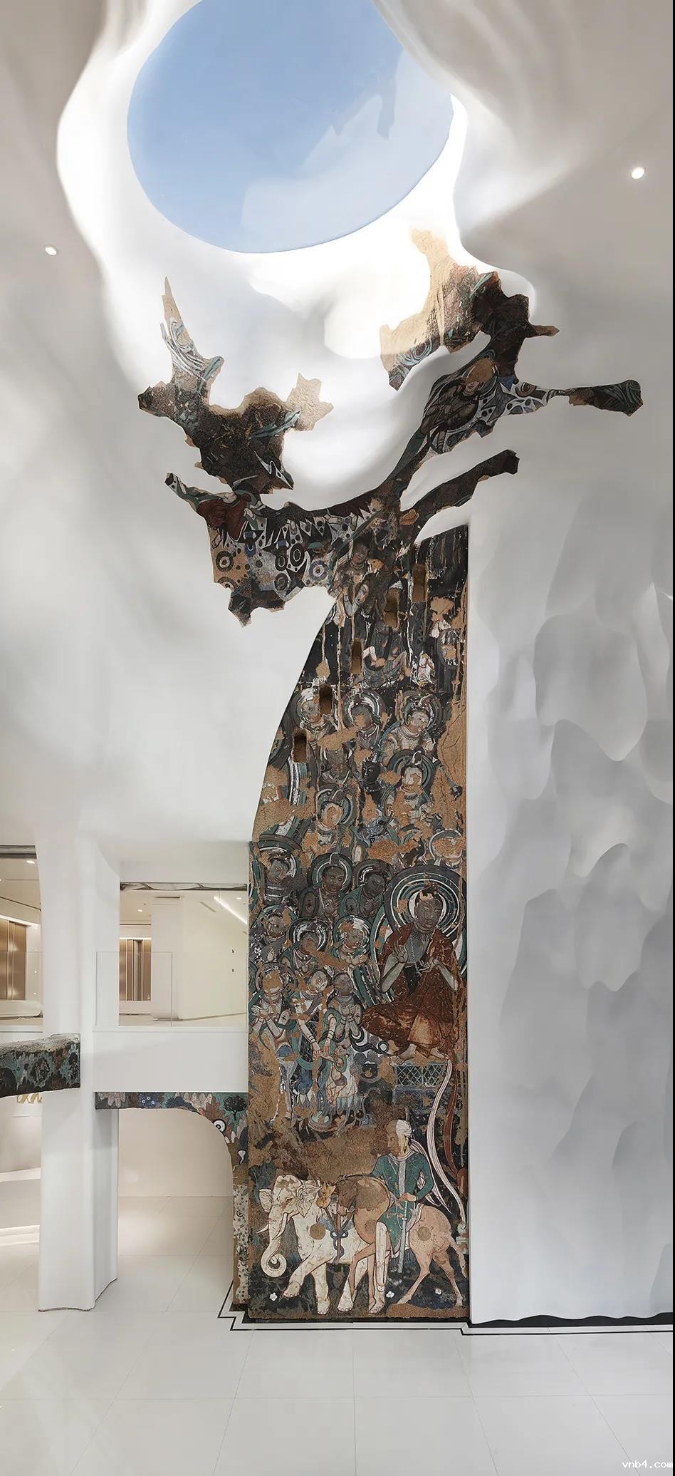 龟兹洞天位于美克洞學館主入口上方,作为建筑内部的采光井,以独具设计感的造型,将建筑顶部的自然光引入室内,成为“别有洞天”的最诗意诠释。