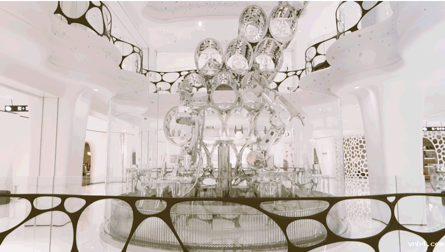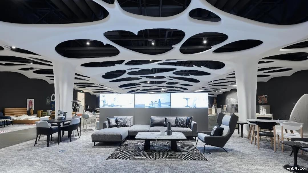 洞學館装置艺术,以“智能制造和工业在互联网上的运用”为表现,为消费者提供了解智能制造和美克家居先进生产系统的窗口。机械臂“科艺化”的表演形式,让其成为馆内最不能错过的打卡点之一。