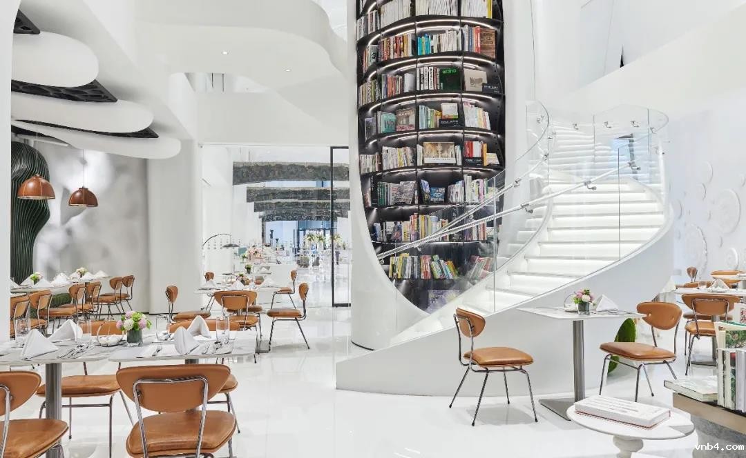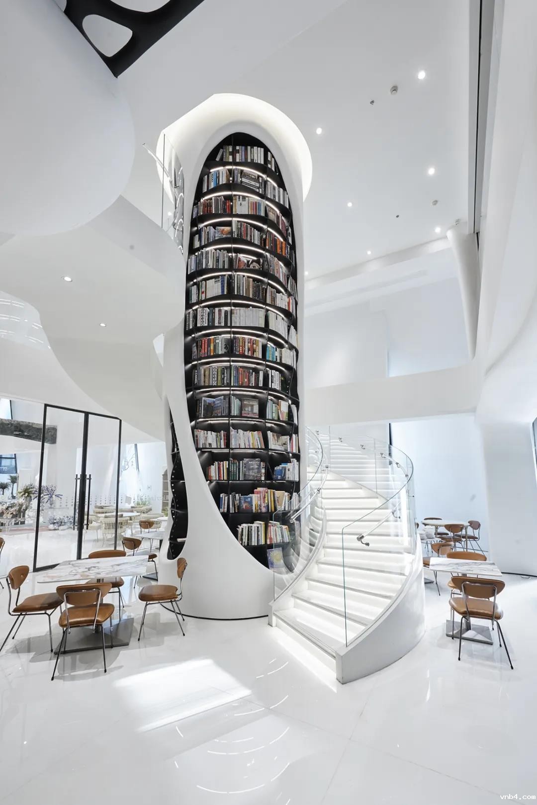 书巢格位于美克洞學館轻爵内部,以一个巨型书架,自下及上贯连一、二层轻爵空间。经此通过旋转楼梯的人,触手可及书架的陈列区,空间利用和设计视角十分巧妙,择取感兴趣的书籍,席地而坐,就地享受片刻闲适。