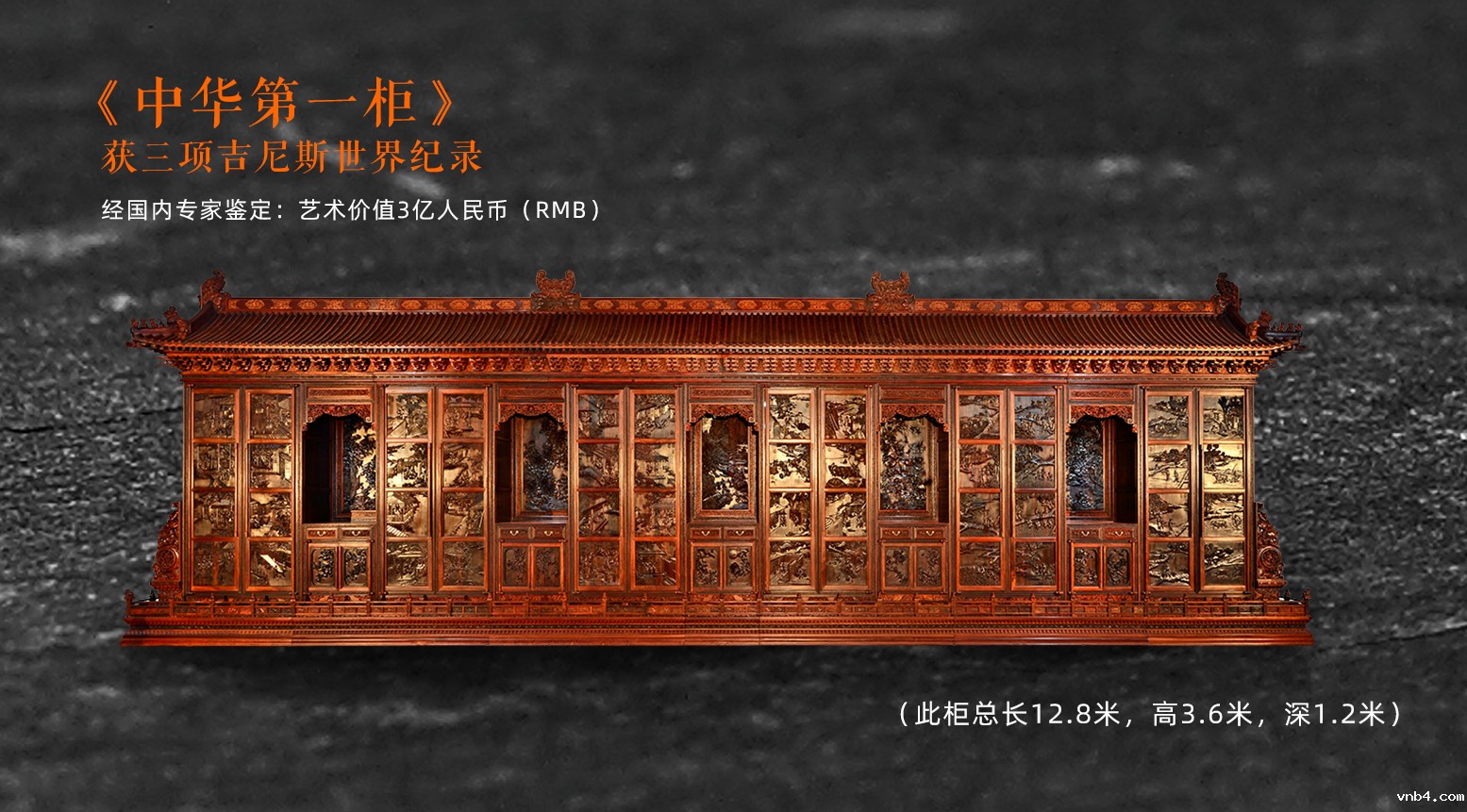 不仅如此,吴腾飞还身体力行,积极投身“东作”红木家具的设计、制作,创立了“精雕”工艺流派,促进了东阳木雕与红木家具的融合发展,开辟了中国红木家具精品化发展之路,并创作了大批堪称经典的精雕红木家具,诸如《盛世华钟》《乾坤博古柜》《二十四孝图》《中华耕织世纪大柜》等,作品多次荣获国内外大奖,也成就了“大清翰林”这一精雕红木家具品牌。早在多年前,“大清翰林”就被授予浙江省知名商号、浙江省著名商标、浙江名牌产品等荣誉称号。