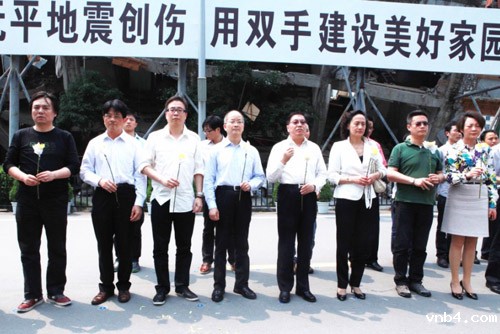 当天,出席仪式的领导嘉宾在北川中学校园内了解校园重建情况,并在温家宝总理题词的“多难兴邦”石壁前留影。北川中学代表带领大家来到北川老城区地震现场,大家在缅怀地震遇难同胞碑前献花寄托哀思。