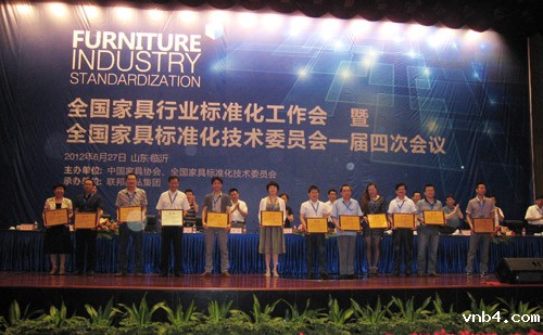 会议宣读了《关于表彰2011年度家具标准化工作先进集体和先进个人的决定》。对过去一年为我国家具标准化工作做出突出贡献的22家单位和26位同志进行 了表彰。先进集体代表成都市产品质量监督检验院副院长张永泽和先进个人代表常州市质量技术监督局副处长张泓作了交流发言;广东联邦家私集团常务副总裁周山 林介绍了联邦集团标准化建设的先进经验。