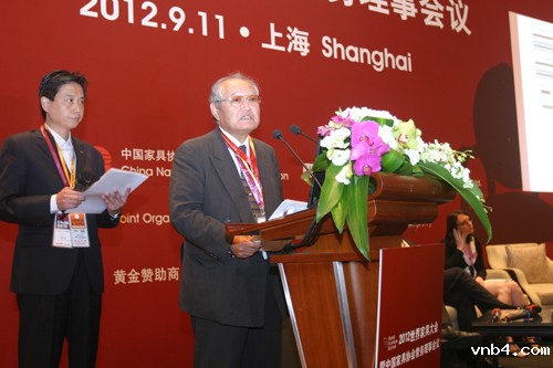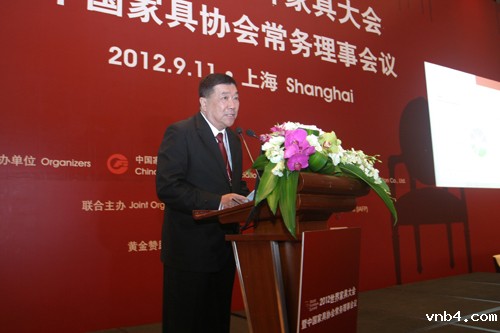 上半场会议的最后,由亚洲家具联合会会长林作新作第四讲。林会长报告了亚洲地区家具业近两年来的发展情况,针对亚洲各国家具的进出口数据,介绍了中国、日本、韩国,以及马来西亚、越南等国的家具进出口情况,以部分上市公司为例重点分析了中国家具的对外贸易形势。