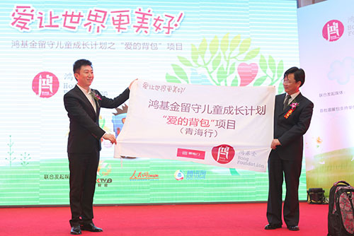 鸿基金为喜临门授旗开启爱心背包首站青海行