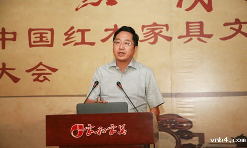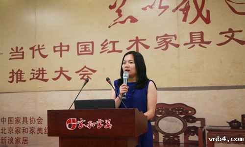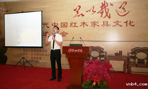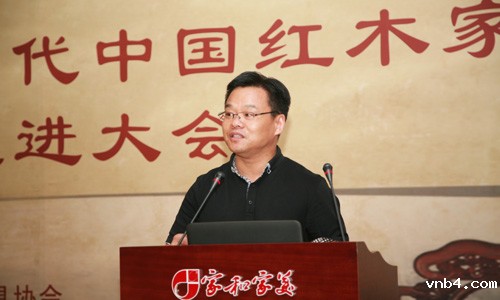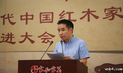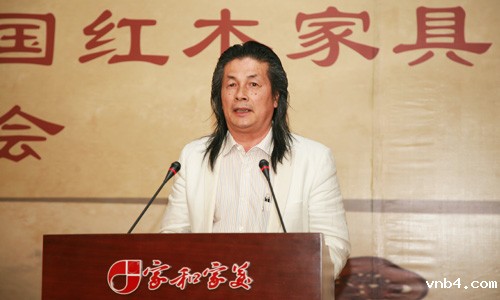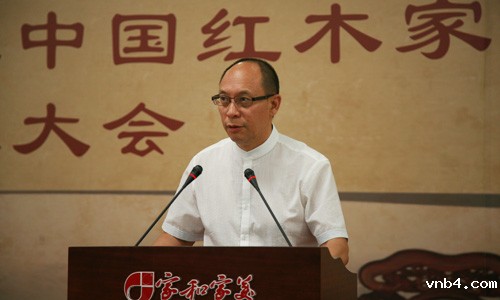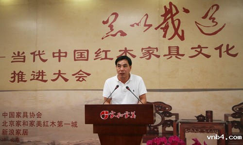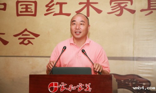 北京家和家美家居市场有限公司董事长田耘在会上致辞。田耘介绍了家和家美红木第一城的概况,对其以规模化、产业化、专业化为宗旨,以品牌荟萃、工厂直销、原创原产为特色的开办理念作了诠释。田耘表示,红木家具凭借稀缺的用材、精湛的工艺、优美的外形和深刻的文化内涵,是一个常青不衰的产业。
