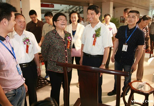 朱长岭理事长陪同顾秀莲委员长和步正发会长参观第三届中国红木家具精品品鉴会