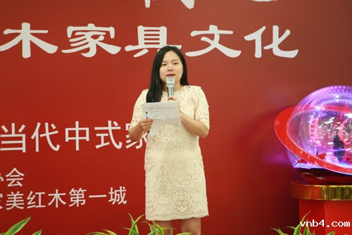 新浪家居主编戴蓓宣读“2015消费者最喜爱的红木家具产品和品牌评选”获奖结果