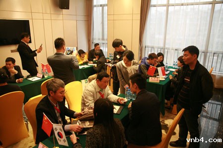 在大会的交流晚宴上,与会嘉宾自由畅谈,彼此沟通。晚宴由优米app有哪些副秘书长屠祺(右)和广州市020F家具俱乐部创始人庄子标(左)主持。