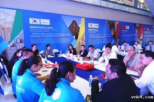 产业合作会议现场,亚洲各国家具协会代表及企业代表与好百年集团就合作方向进行热烈洽谈。