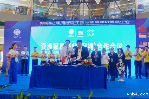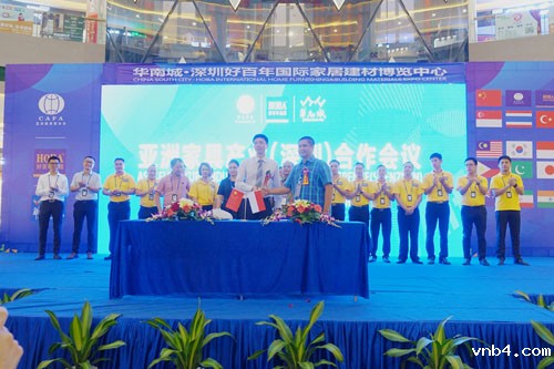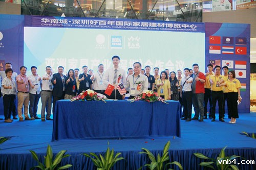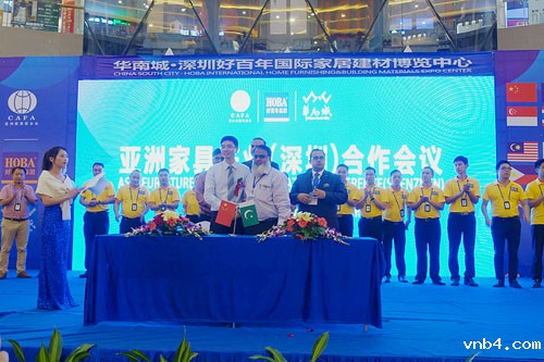 在9月13日的深圳合作会议现场,马来西亚家具总会、印度尼西亚家具与工艺品行业协会、巴基斯坦家具出口商协会、巴基斯坦家具制造商协会、泰国家具协会、菲律宾家具业公会先后与好百年集团进行签约,确定入驻华南城•深圳好百年国际家居建材博览中心。