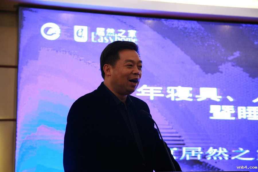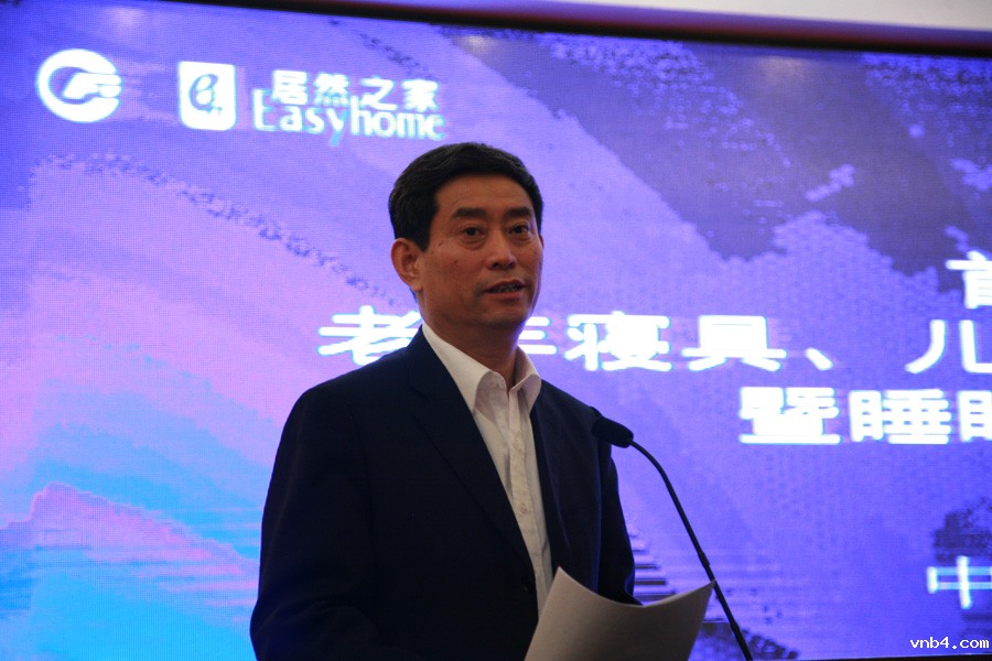 北京居然之家投资控股集团有限公司董事长汪林朋为大会致辞。他对与会嘉宾表示欢迎,并表示将继续关注老年、儿童家具的发展,促进多方共赢。