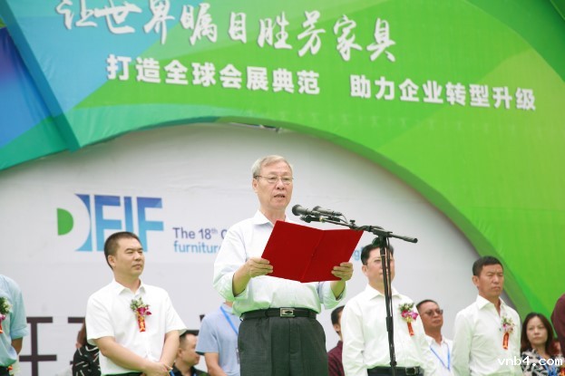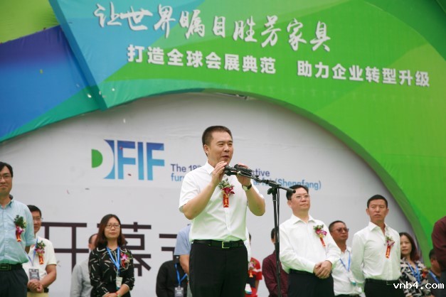 胜芳镇家具行业协会理事长王宏乐致欢迎词,他表示将通过博览会汇聚行业力量,带领胜芳家具企业转型升级。
