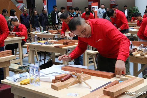 总决赛分为理论考试和技能竞赛。理论考试时间为90分钟,采用百分制,理论成绩占总决赛总成绩的20%,内容包括:职业道德与职业操守、常用木材与人造板知识、识图与制图的基本知识、手工木工的工作范围与操作规程、手工木工工具的操作规范与维护、加工和安装必须的数学计算和建筑力学知识、安全文明生产与环境保护知识、质量管理知识、相关法律法规知识。技能竞赛共计8小时,成绩占总成绩的80%,内容为:使用手工木工工具和缅甸花梨净料,现场按照图纸、纯手工、独立制作一件条凳,重点考察选手的榫卯制作能力和细节处理能力,电动工具只允许自带一台手提砂光机,比赛作品不允许使用胶水。裁判员对参赛作品按照“材料使用、读图识图、加工质量、作品装配质量和职业素养”五大项评分标准、高标准严要求的进行分组测量与打分,最终评审出选手作品成绩。总决赛同期,11个分赛区的选拔赛冠军作品和2017年全国技能大赛——全国家具红木雕刻职业技能竞赛总决赛的前三名作品共同展出。
