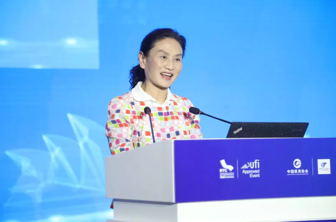 世界家具联合会秘书长、亚洲家具联合会副会长兼秘书长、 副理事长屠祺以“携手推进全球家具行业共同发展”为题作主题演讲。她介绍了全球家具产业格局,并对推进全球家具产业协同发展提出了建议:要打造绿色产业模式,建立高效的沟通机制,搭建共赢合作平台,培育新型增长动力。