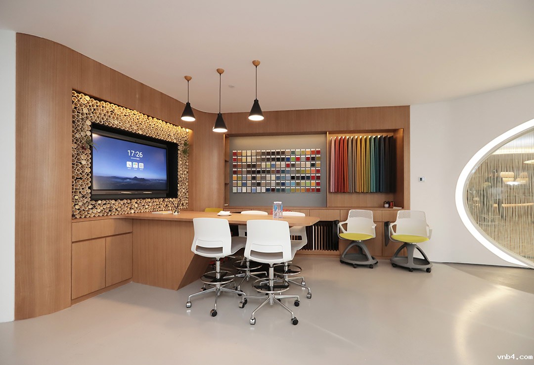 据悉,海太欧林集团北京新展厅运用了大量速生环保竹材作为展厅空间隔断,让每一个空间既区分又相连,并形成透视效果。随处可见的绿植高低错落,形态不一,与空间和产品完美融合,形成一个生机勃发的办公生态系统。新展厅结合了各种新科技,在智能控制、人脸识别、久坐提醒等人性化、智慧化设计方面令人耳目一新。