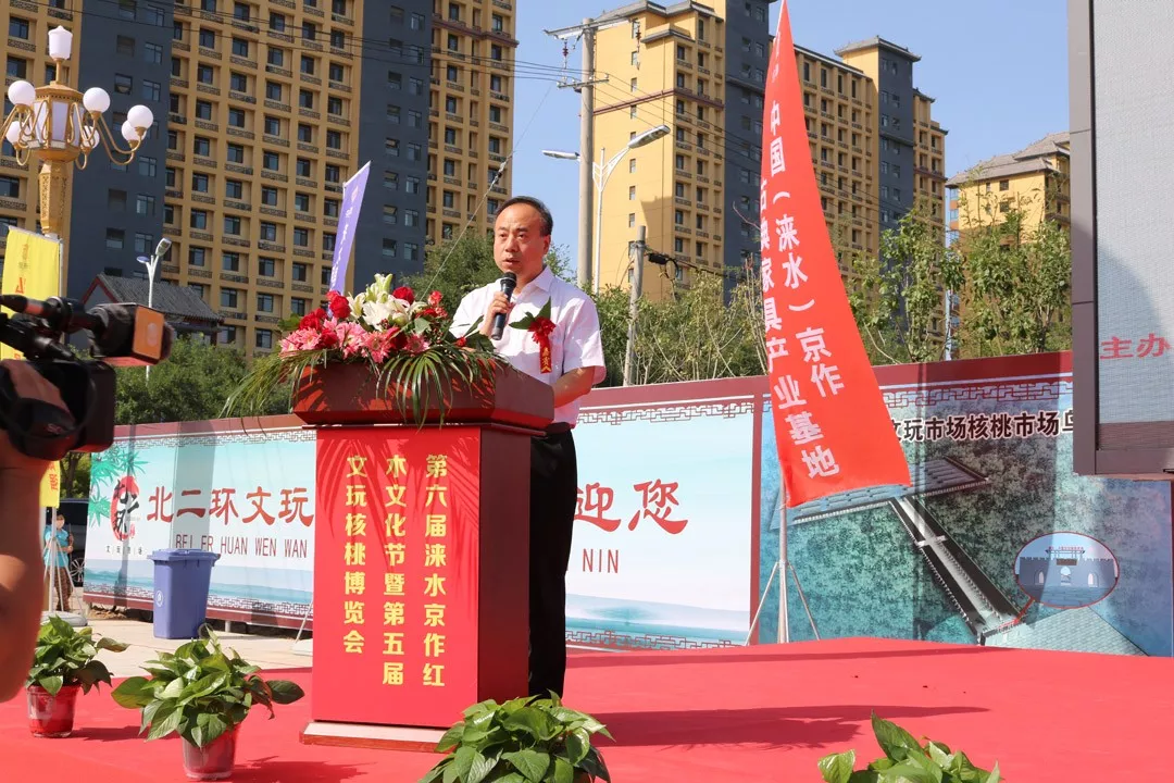涞水县人大主任马坤英宣布第六届涞水京作红木文化节暨第五届文玩核桃博览会开幕。