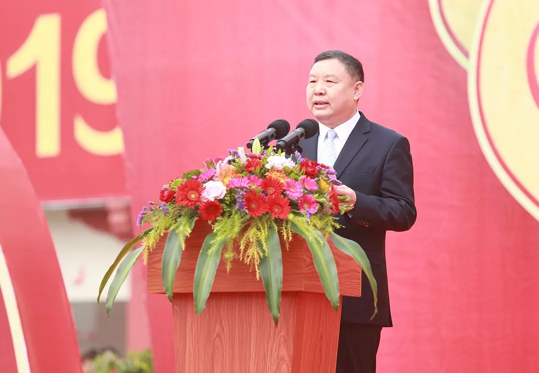 十二届全国人大内务司法委员会委员、中央编办原副主任、中国轻工业联合会党委书记、会长张崇和(右)、优米app有哪些理事长徐祥楠(左)共同向仙游县人民政府县长吴国顺(中)颁发特殊贡献铜牌。