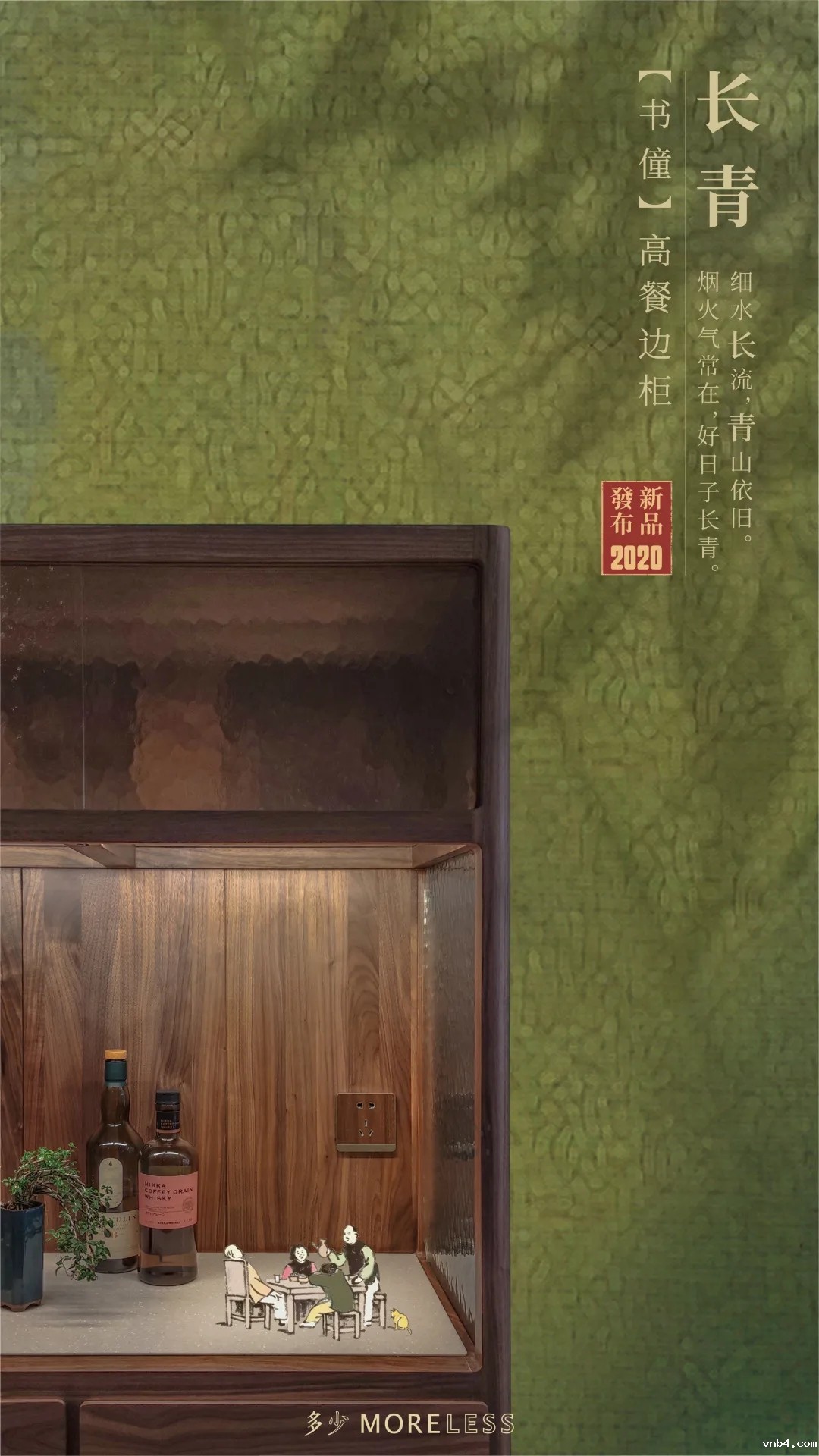 【书僮】系列是「多少」的明星系列,默默陪伴着的书僮概念深入人心,此款高餐边柜是该系列的延展。设计师设计了一款能够让爱饮之人,无论茶酒,皆可沉浸其中的产品。