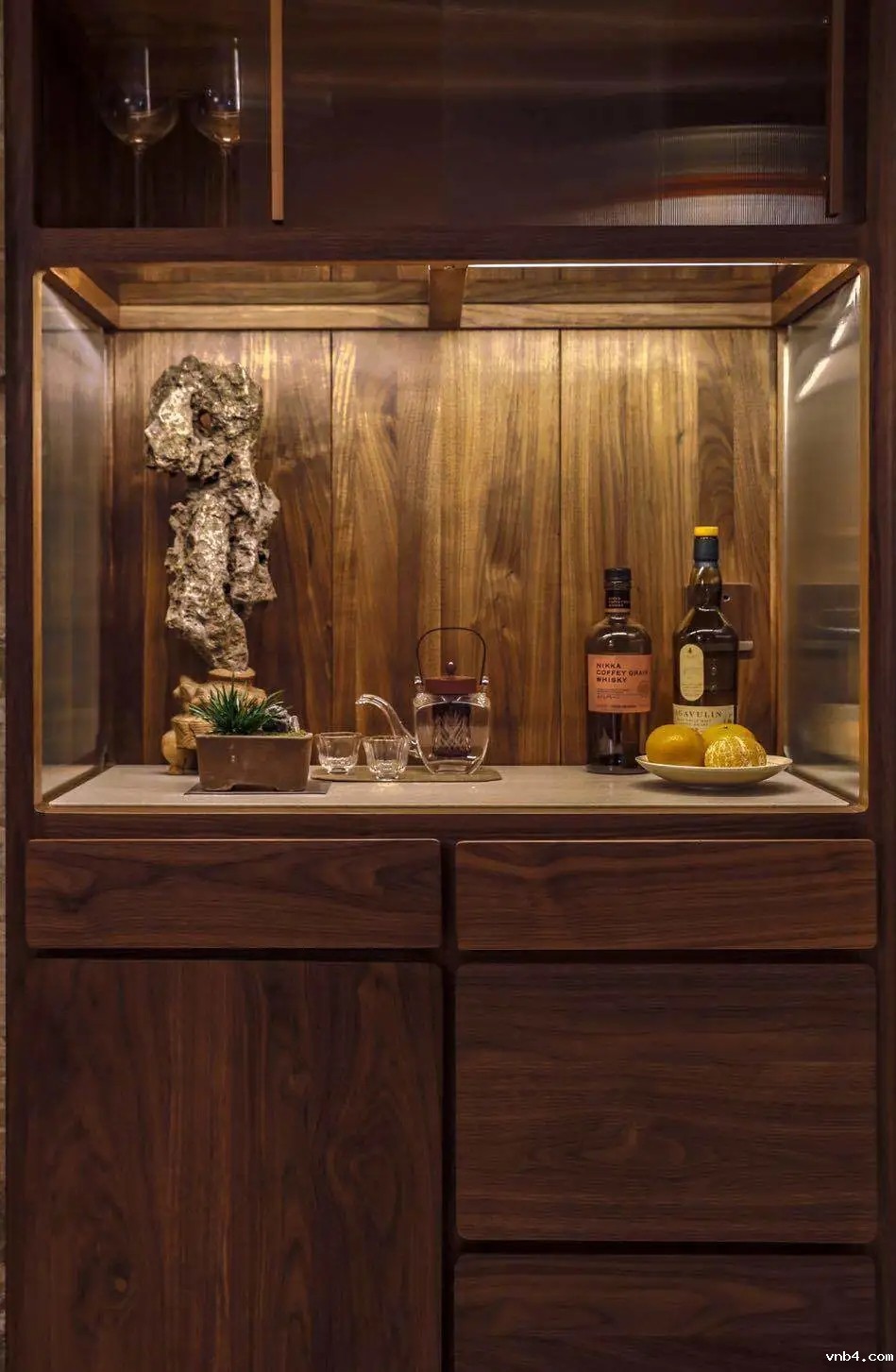 为了使生活家们专注兴趣,设置了专属的吧台。吧台内配备感应灯、插座、隔热人造石操作台等,使用者可以站在餐边柜跟前,就能在此制作出自己的杰作:茶、酒、咖啡、无不相宜。