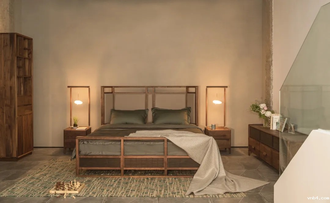 日落而归,回到家是人最想放松的状态。高围屏的设计给人以迎面而来的敦厚靠谱之感,睡得踏实,从遇见【渔樵】床的那一刻就有了心理暗示"
