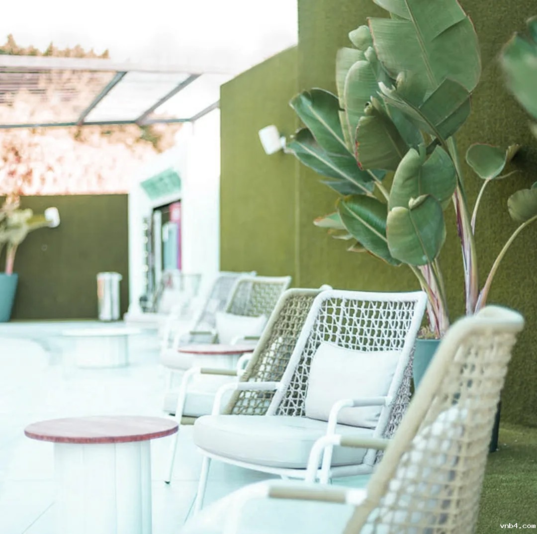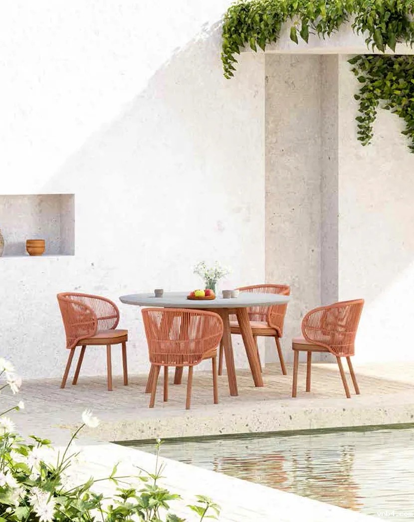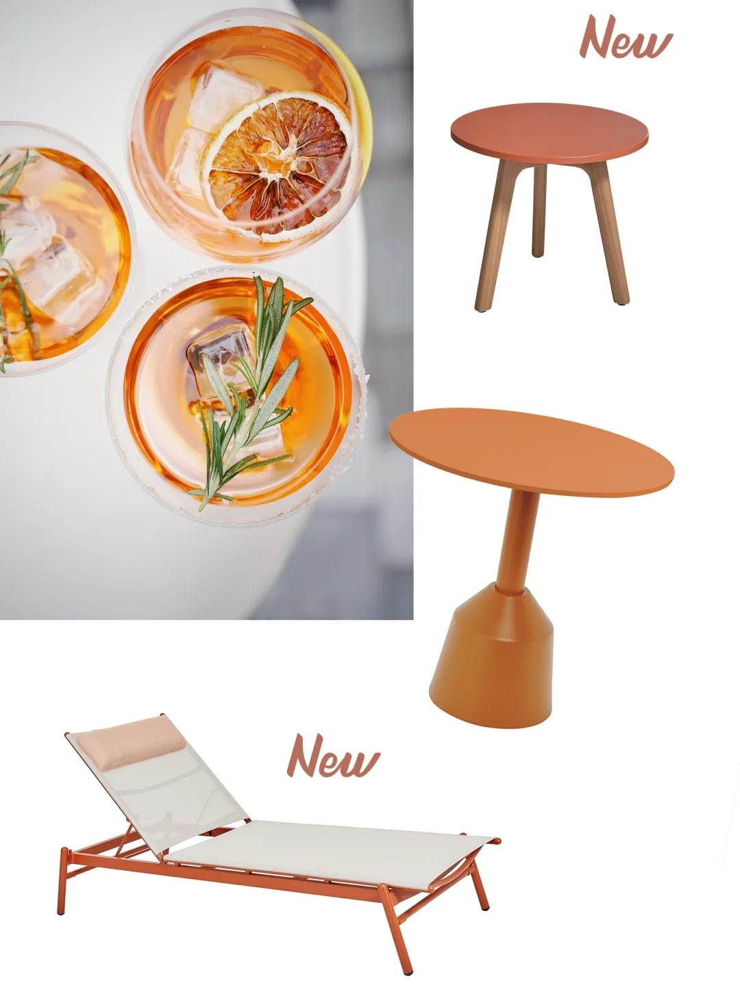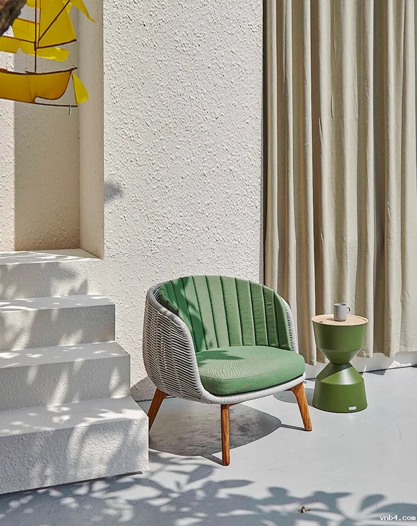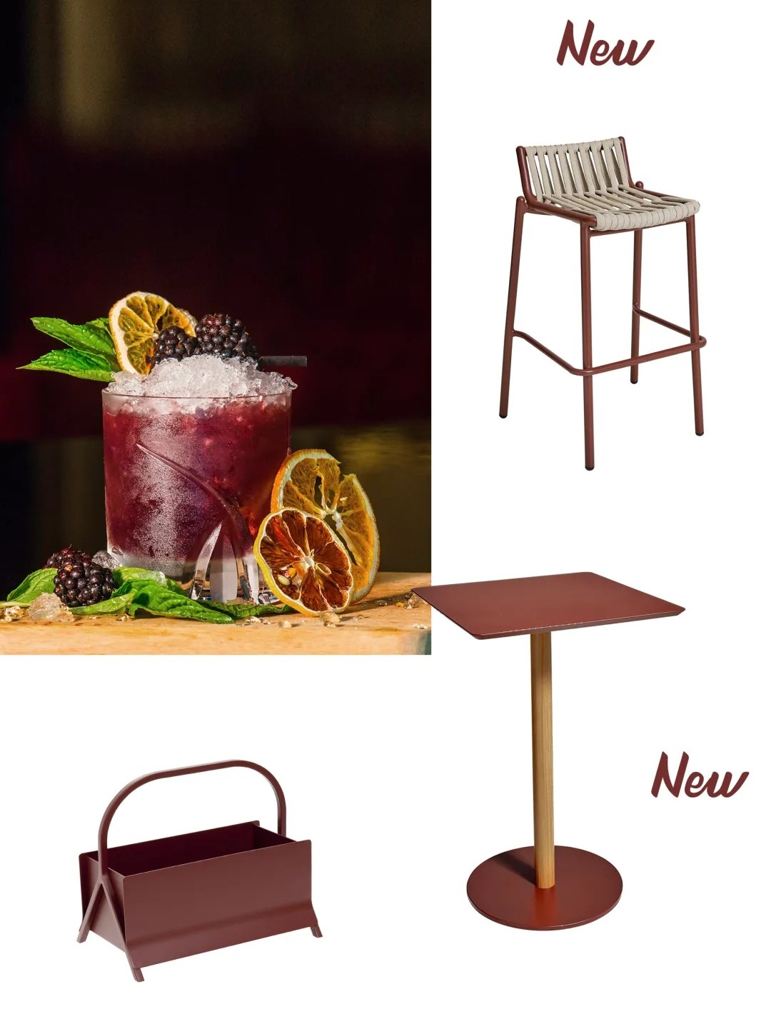 1.琴蕾酒特调采用伏特加、新鲜黄瓜汁、青柠汁、糖浆、罗勒叶调制而成。2.Bagel餐椅「新品」推出全新清爽配色,椅腿及椅身采用同色系,强调整体感。3.Lotus边桌结合竹木元素,搭配绿色叠瓣基座,营造森系自然风。4.Loop餐桌「新品」用下圆上方的简洁设计,表达更年轻、活泼的户外生活方式。