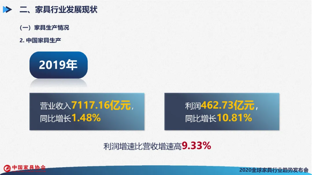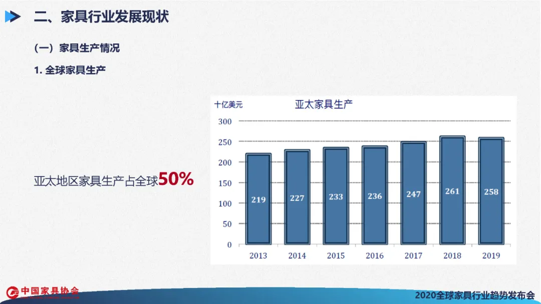 首先,回顾一下2019年家具生产、贸易、消费三个方面的情况。